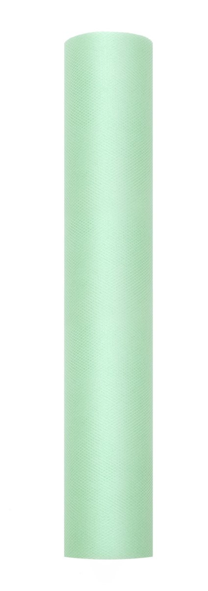 Zawartość: Tiul gładki, miętowy, na rolce, rozmiar 0,3x9 metrów.