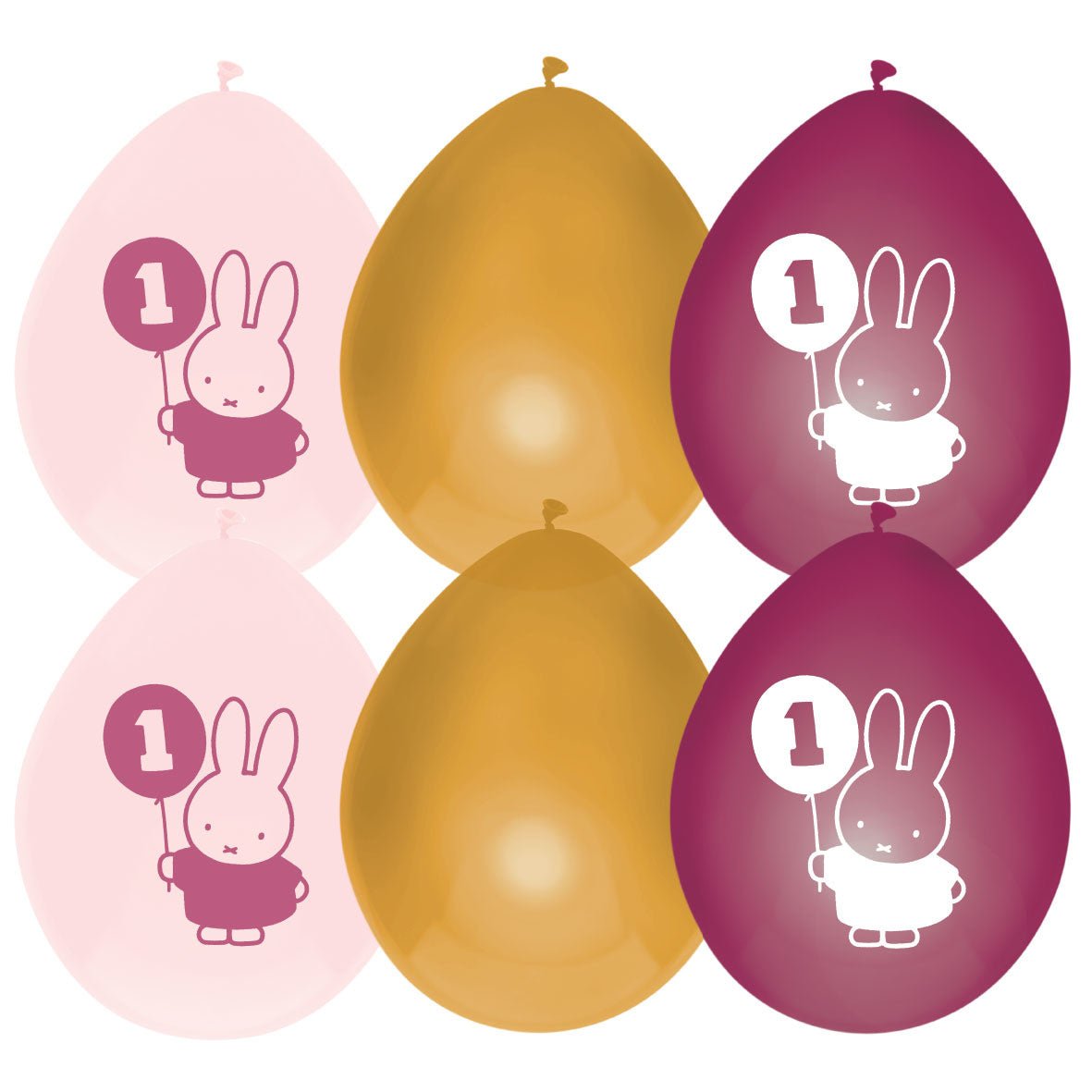 Balony Miffy 1 Rok Różowe 30cm 5szt