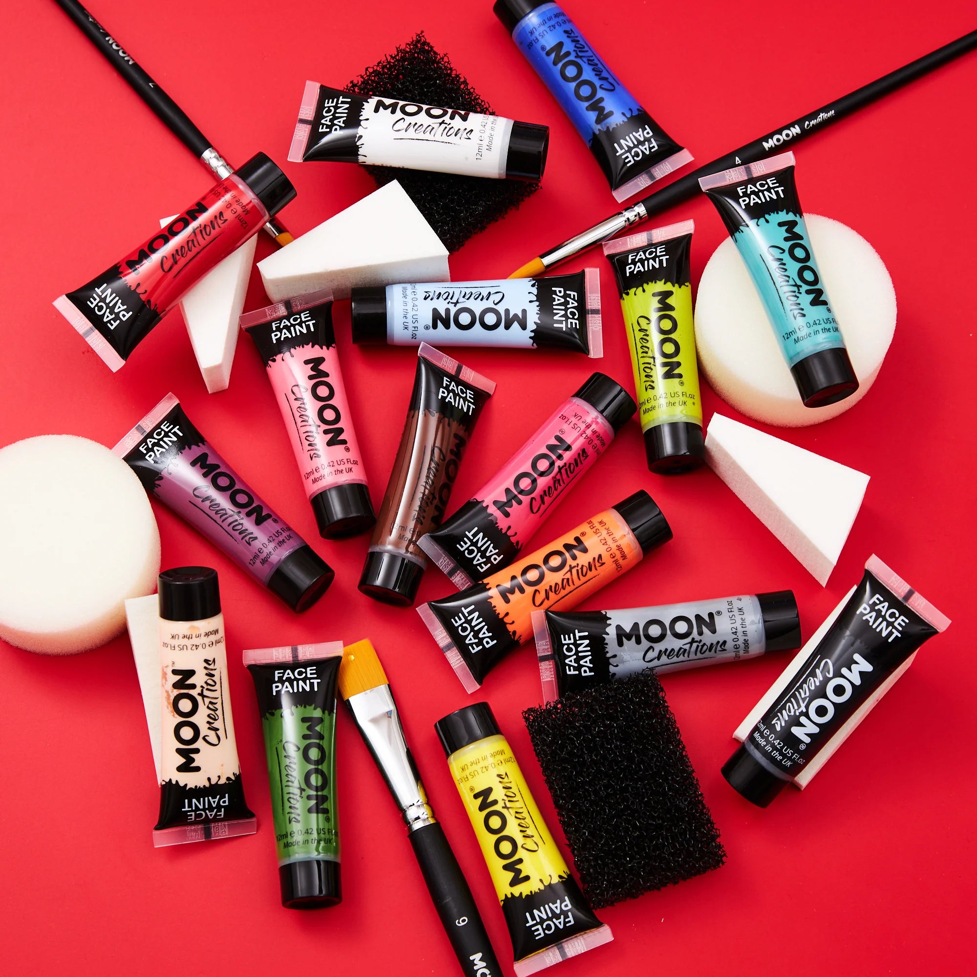 Dzięki temu gotowemu do użycia produktowi do makijażu nie potrzebujesz wody. Po prostu przekręć tubkę, wyciśnij odrobinę farby i nałóż ją pędzlem, gąbką lub opuszkami palców! Szybko wysycha i można go łatwo usunąć wodą z mydłem lub chusteczkami do makijażu.