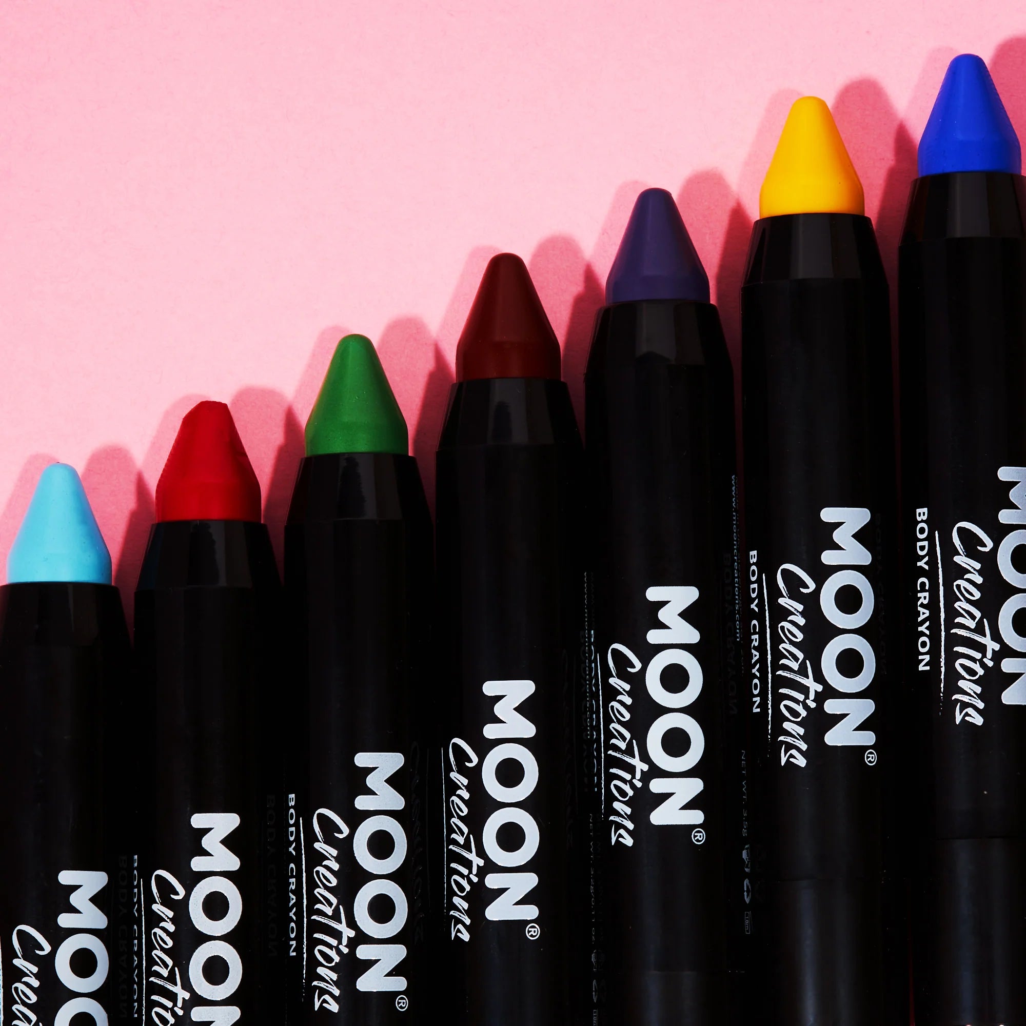 Kredki są gotowe do użycia - nie wymagają użycia wody. Są bardzo łatwe do nałożenia bezpośrednio na twarz lub ciało, bez bałaganu i umiejętności! Po prostu usuń je chusteczkami do makijażu.