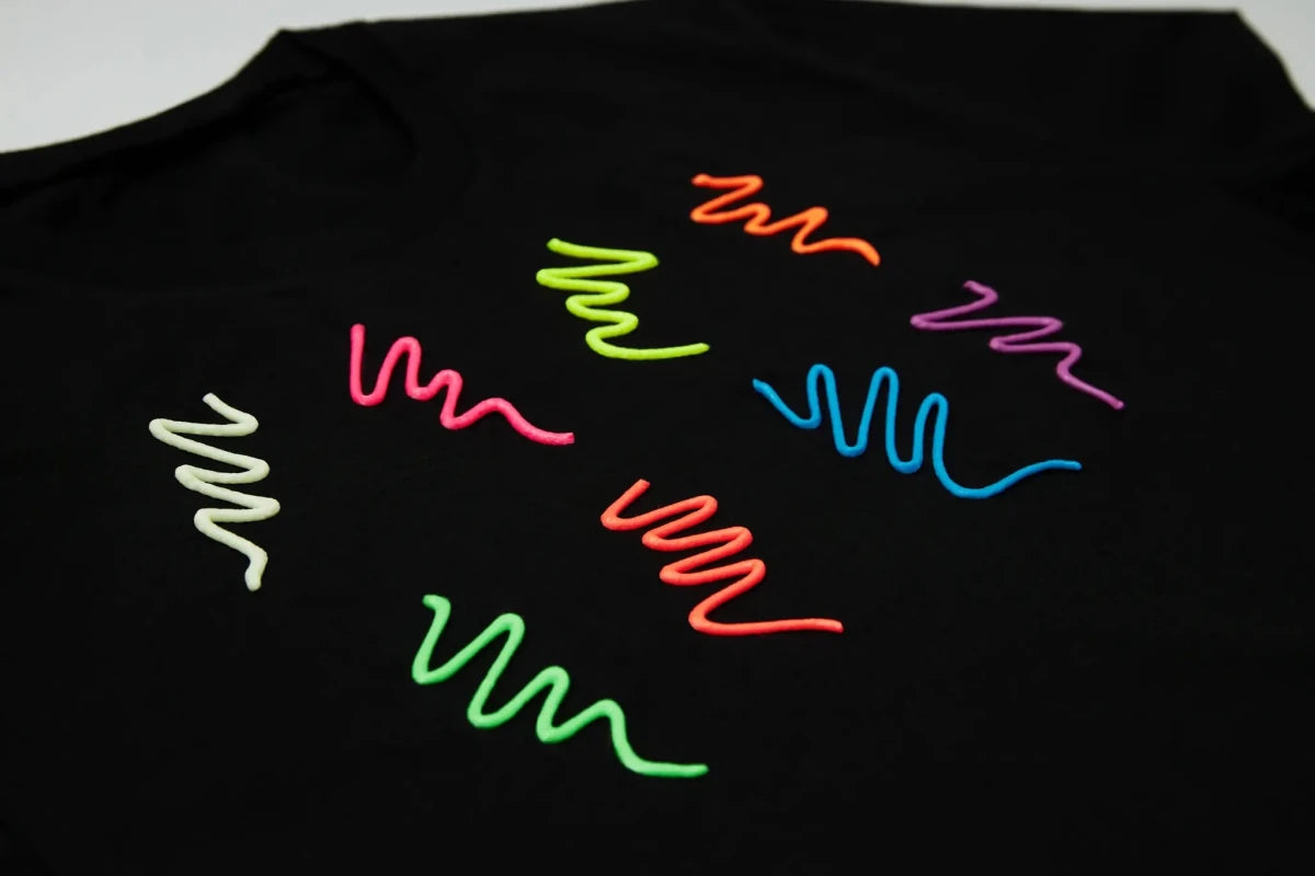 Wysoko napigmentowana, trwała neonowa farba UV do tkanin zapewniająca długotrwałe, przyciągające wzrok wzory. Wszystkie 8 przyciągających wzrok kolorów świeci neonowym blaskiem w dzień i ogromnym blaskiem w świetle UV/czarnym w nocy. Nadaj nowe życie ubraniom, akcesoriom i nie tylko, tworząc olśniewające wzory za pomocą naszych żywych i fluorescencyjnych czerwonych, zielonych, pomarańczowych, niebieskich, żółtych, różowych, fioletowych i niewidocznych farb do tekstyliów. Te osiem niesamowitych kolorów wstrząśnie Twoim światem sztuki.