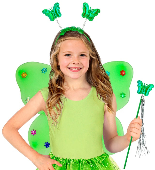 Pozwól dzieciom zmienić się w czarującego motyla dzięki temu kompletnemu zielonemu zestawowi, idealnemu na imprezy kostiumowe, imprezy tematyczne lub pomysłowe odgrywanie ról.