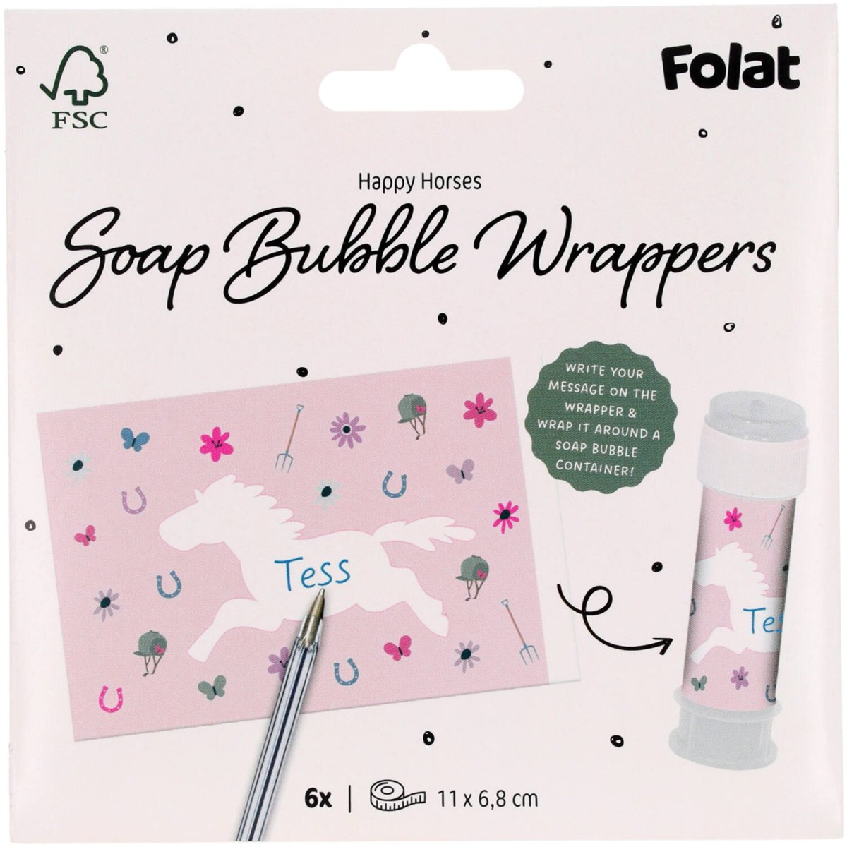 Dla każdego fana koni dmuchawa do baniek. Naklejki dmuchańce - Szczęśliwy koń -6 sztuk. Zawartość: 6 naklejek do dmuchania. Do wykorzystania na przykład podczas następujących przyjęć/imprez: Impreza dla dzieci, Urodziny, Impreza tematyczna. Każdy ma własną dmuchawę do baniek. Naklejki z koniem pasują do standardowej butelki do dmuchania baniek i mają wymiary 11 x 6,8 cm: 11 x 6,8 cm. Są zadrukowane z jednej strony. Te naklejki bąbelkowe należą do kolekcji Happy Horses autorstwa
