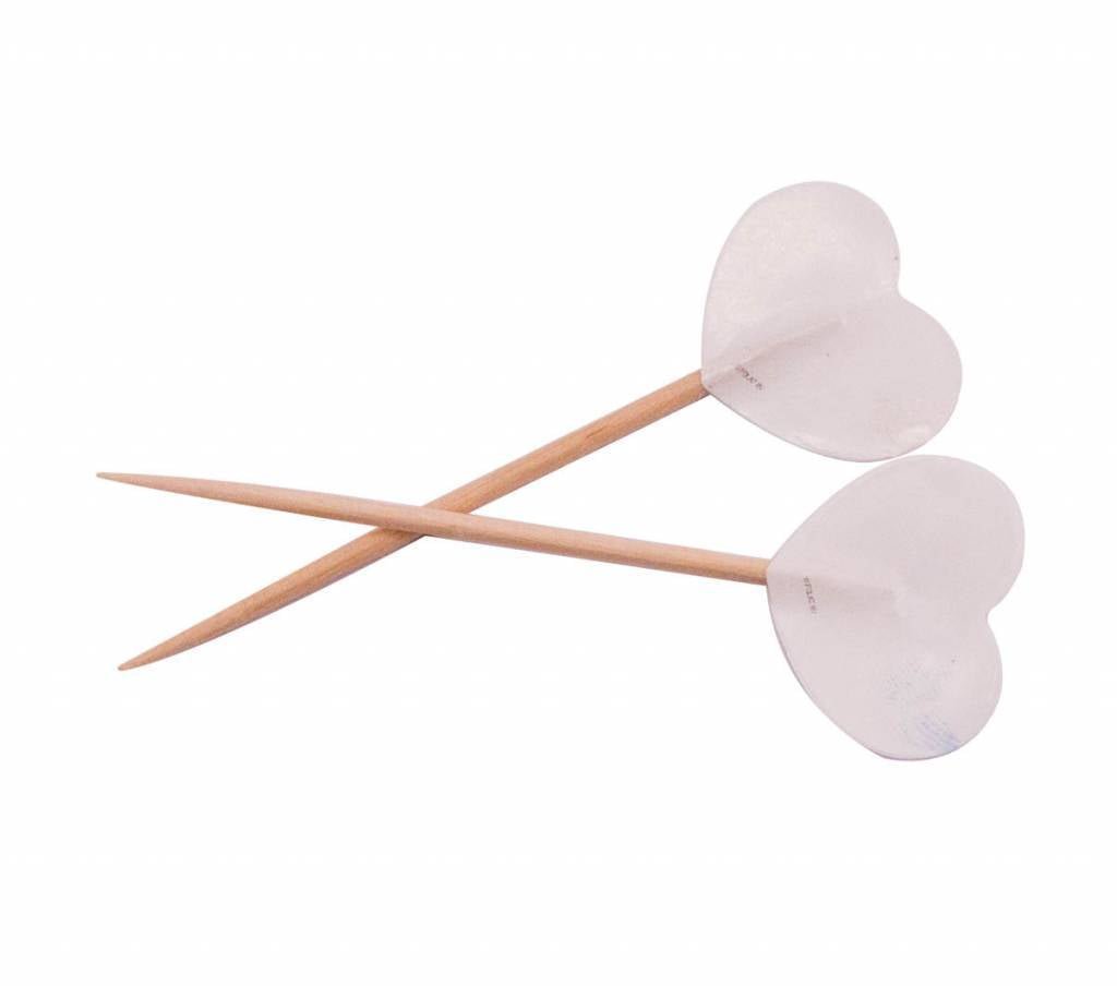 Nakłuwacze białe serca - 50 szt. Zawartość: 50 wykałaczek. Na przykład do wykorzystania podczas następujących uroczystości/imprez: Walentynki, Ślub i Dzień Matki. Każdy szpikulec mierzy 6,5 cm. Te wykałaczki są wykonane z bambusa.