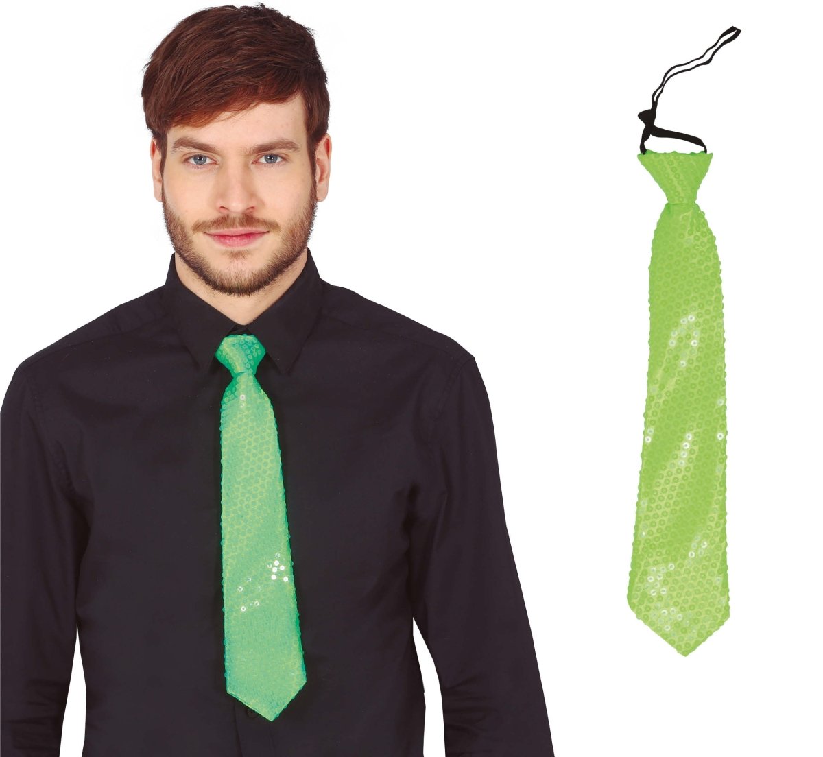Neonowy zielony krawat brokatowy 37 cm