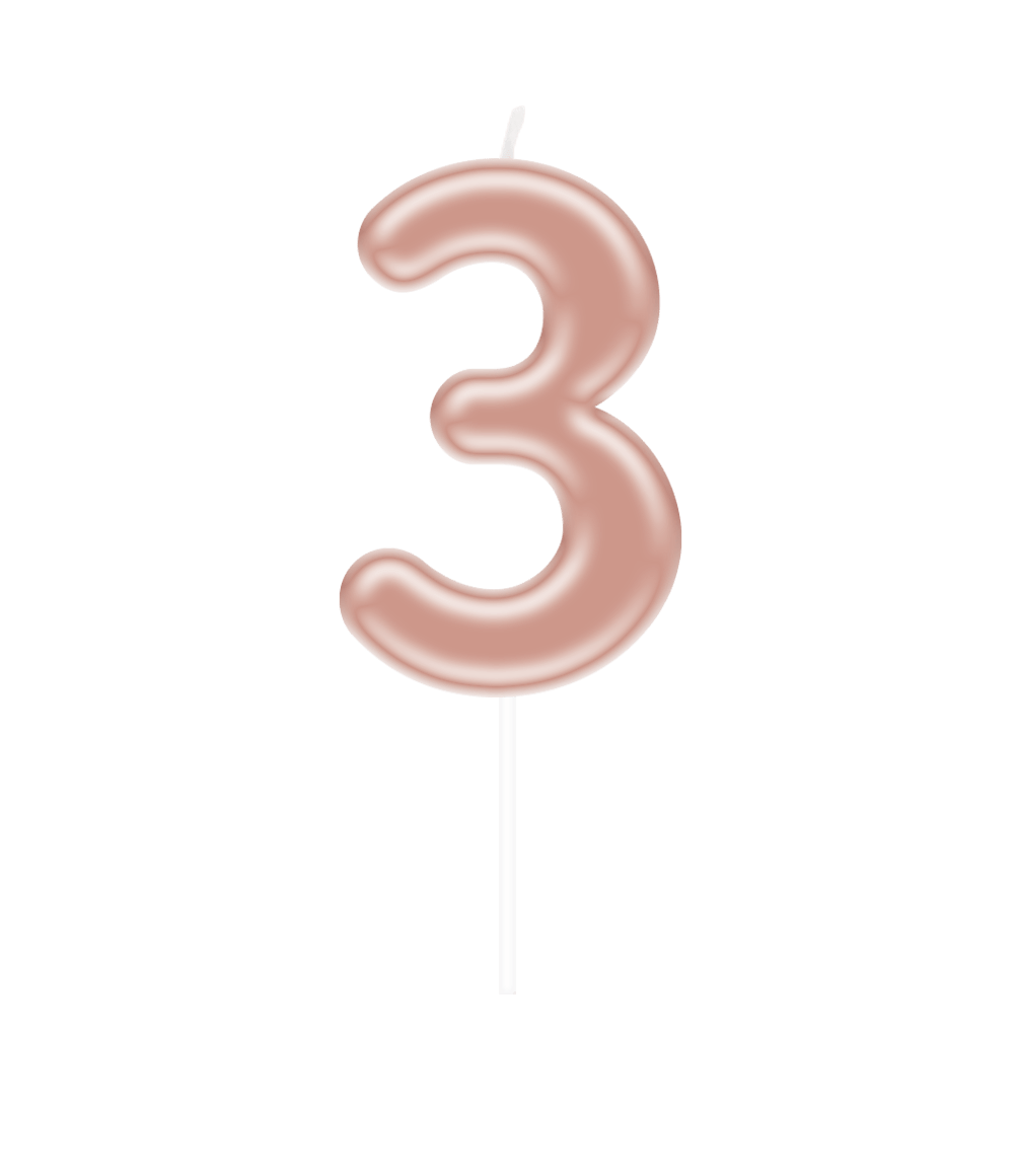 Stylowo świętuj każdy kamień milowy dzięki tej różowozłotej świecy numerycznej "3". Idealna do oznaczania wieku, rocznic lub innych specjalnych okazji. Błyszczący kolor różowego złota sprawia, że świeczka wyróżnia się na każdym torcie lub babeczce