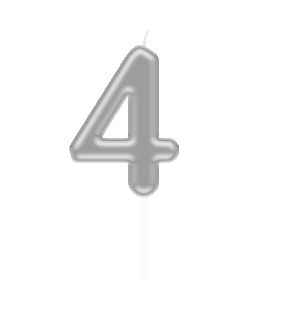 Stylowo świętuj każdy kamień milowy dzięki tej srebrnej świecy numerycznej "4". Idealna do oznaczania wieku, rocznic lub innych specjalnych okazji. Błyszczący srebrny kolor sprawia, że świeczka wyróżnia się na każdym torcie lub babeczce.