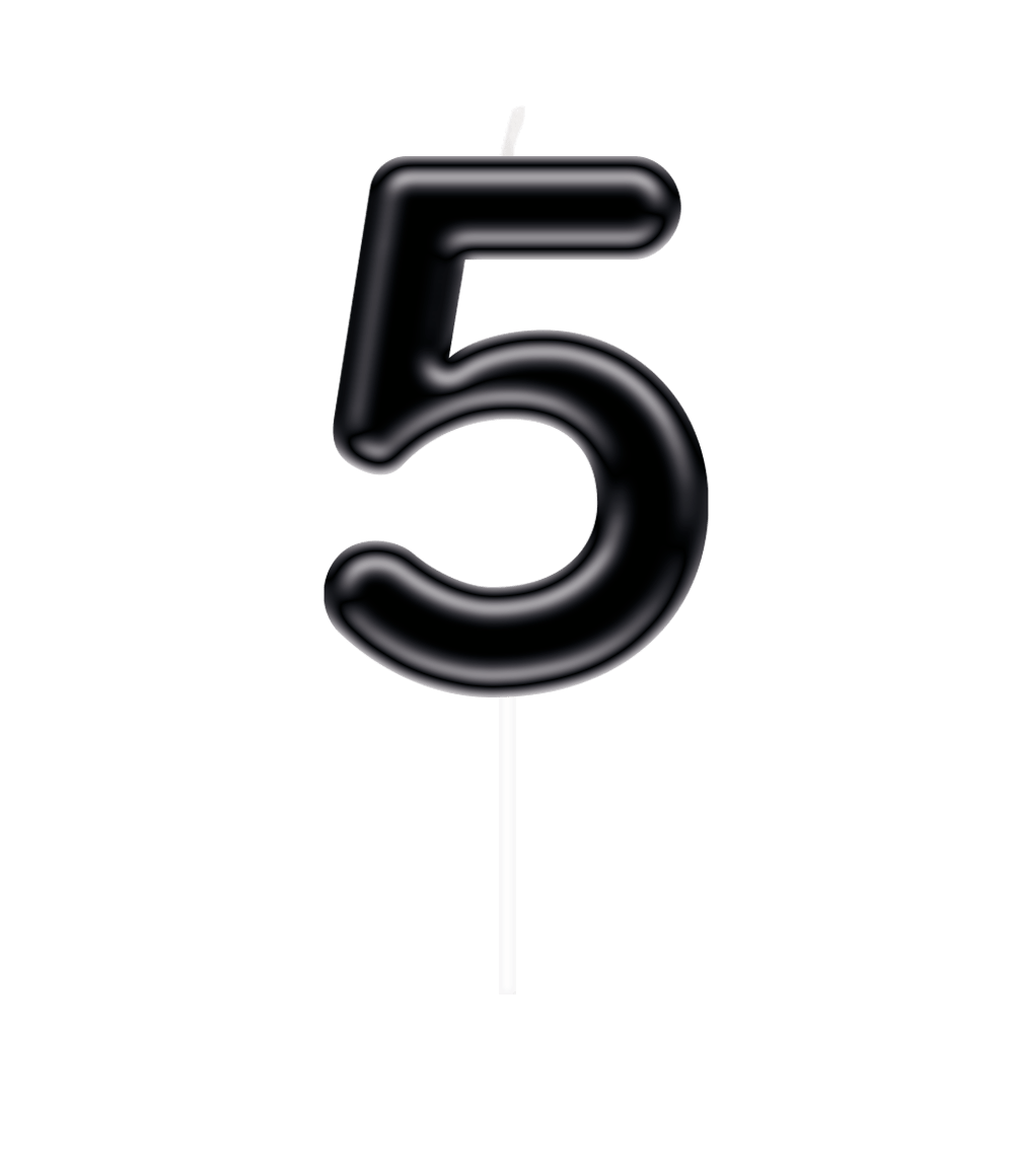 Stylowo świętuj każdy kamień milowy dzięki tej czarnej świecy numerycznej "5". Idealna do oznaczania wieku, rocznic lub innych specjalnych okazji. Czarny kolor sprawia, że świeczka wyróżnia się na każdym torcie lub babeczce.