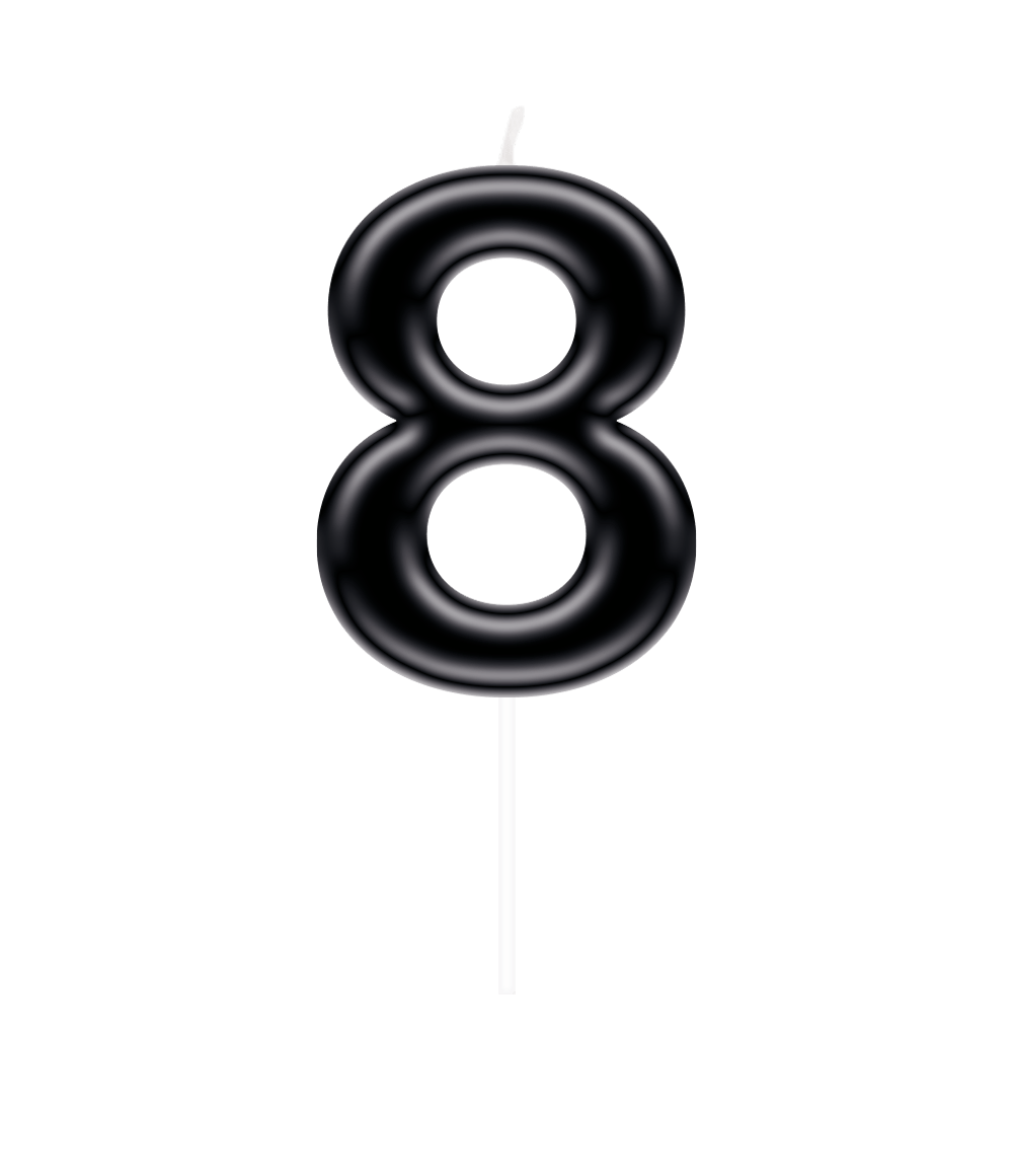 Stylowo świętuj każdy kamień milowy dzięki tej czarnej świecy numerycznej "8". Idealna do oznaczania wieku, rocznic lub innych specjalnych okazji. Czarny kolor sprawia, że świeczka wyróżnia się na każdym torcie lub babeczce.