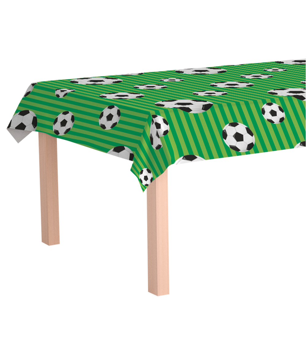 Dzięki dużemu rozmiarowi 137 × 274 cm , obrus - Piłka nożna zmieści się na prawie każdym stole imprezowym. Jest wykonany z wytrzymałego i lekkiego materiału PE , dzięki czemu jest praktyczny, zdejmowany i idealny na ruchliwe przyjęcia.
