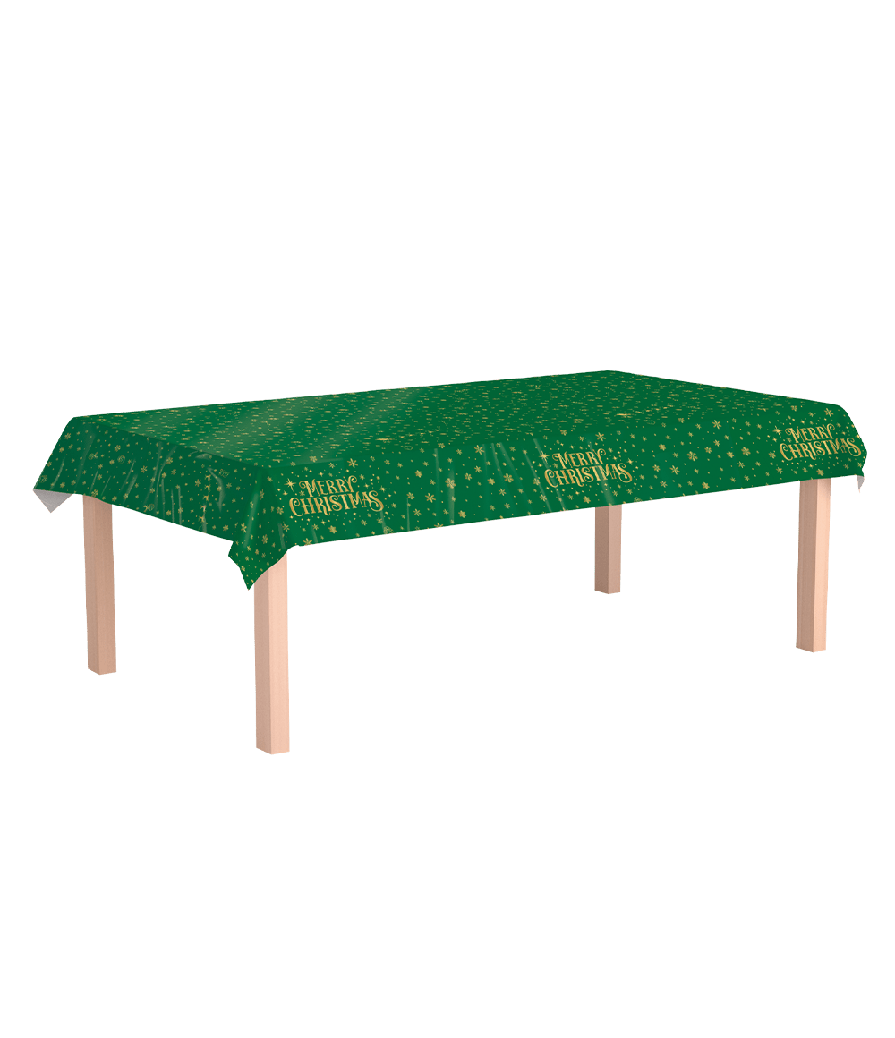 Świąteczny obrus Zielone Złoto Wesołych Świąt 2.74m