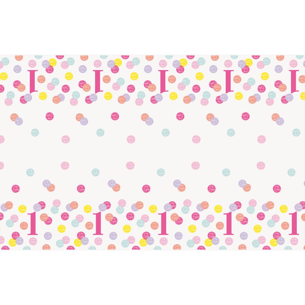 Zawartość opakowania: Obrus urodzinowy 1 rok kropki 2,13 m
