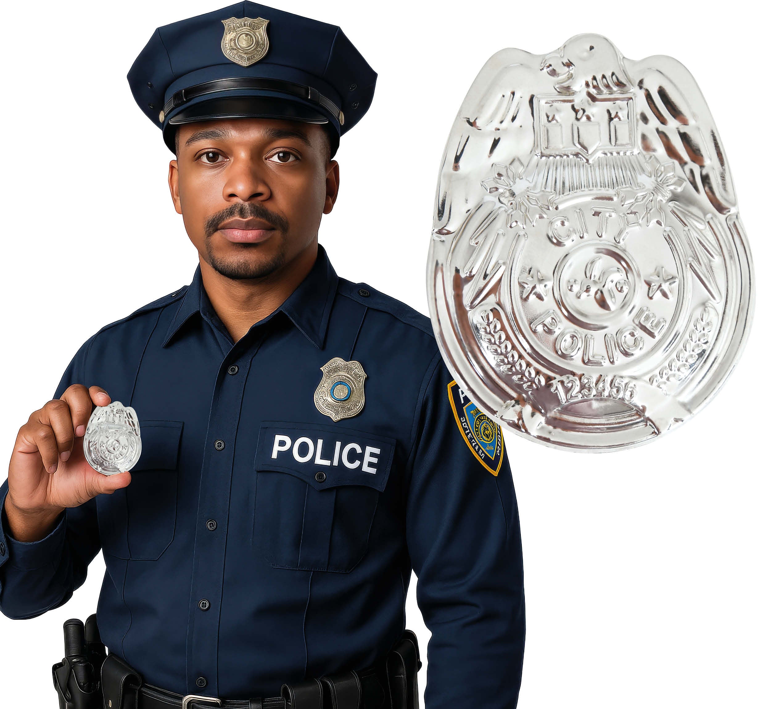 Ta srebrna odznaka policyjna to zabawny i rozpoznawalny dodatek na imprezy kostiumowe, karnawałowe lub przebierane. Kompaktowy rozmiar i klasyczny design sprawiają, że odznakę można łatwo łączyć z różnymi strojami policyjnymi.