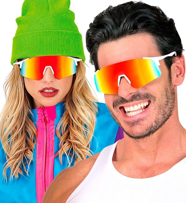 Wyróżnij każdy strój dzięki tym okularom z tęczowymi lustrzanymi soczewkami, idealnymi na imprezy kostiumowe, festiwale, imprezy tematyczne lub cosplay.