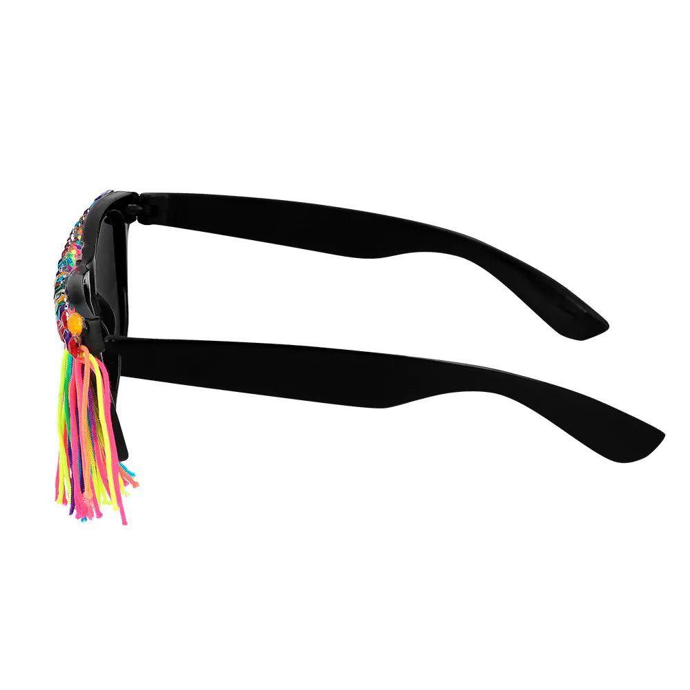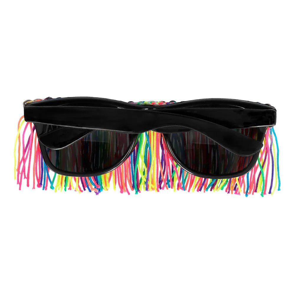 Dodaj zabawny i kolorowy akcent do każdej imprezowej stylizacji dzięki tym festiwalowym okularom z frędzlami. Oprawka z kolorowymi frędzlami i błyszczącymi kamieniami zapewnia ekstrawagancki wygląd, który jest odpowiedni na festiwal, przebieraną imprezę lub karnawał. Krótko mówiąc, idealny dodatek do przyciągającego wzrok stroju imprezowego