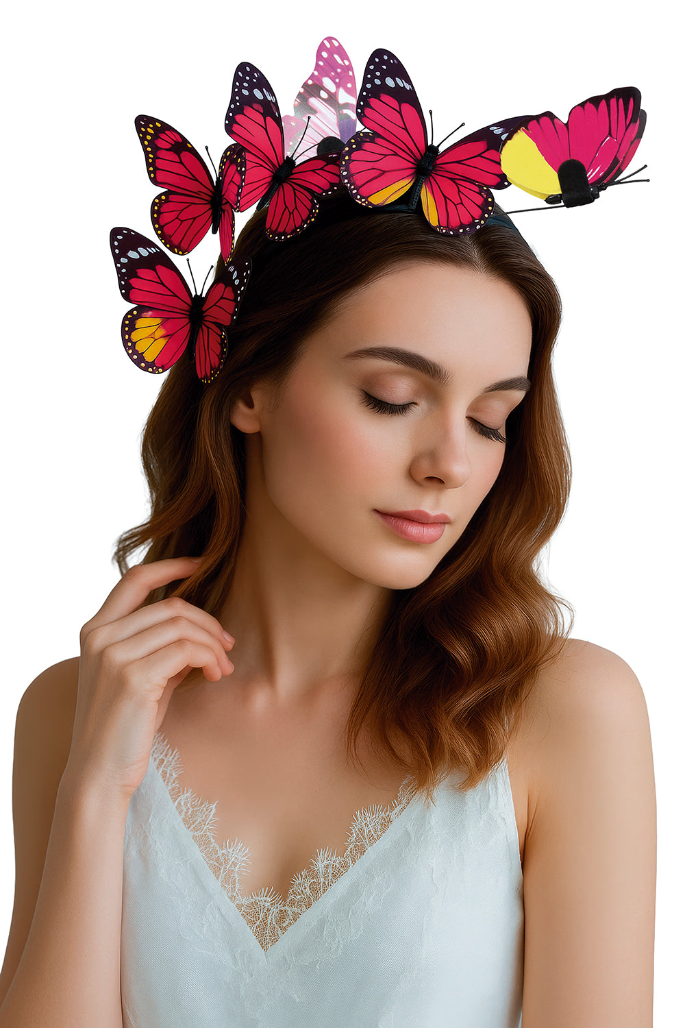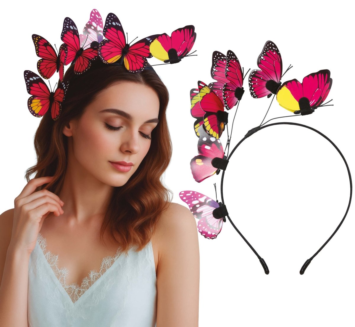 Opaska do włosów w kształcie motyla czarno-różowa