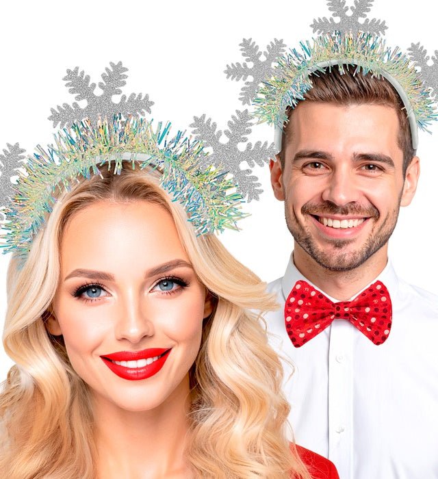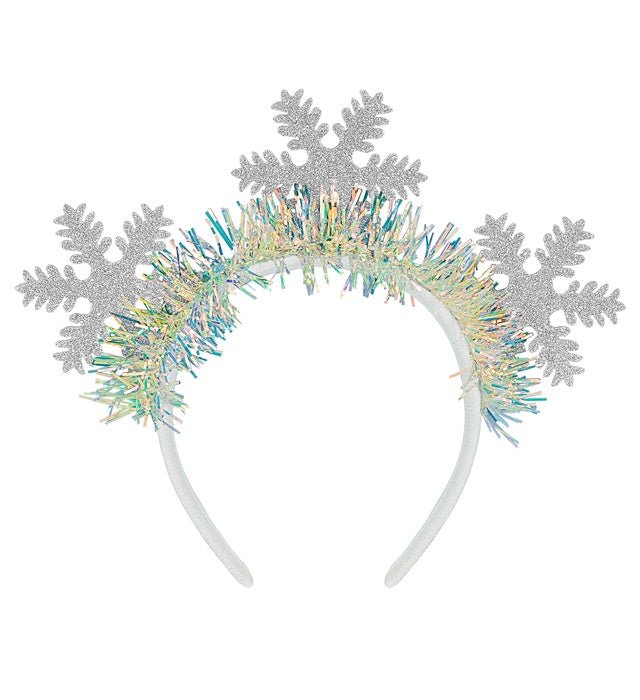 Nadaj swojemu zimowemu lub świątecznemu strojowi błyszczące wykończenie dzięki tej błyszczącej opasce z płatkami śniegu. Przyciągający wzrok dodatek, który doda natychmiastowej atmosfery.