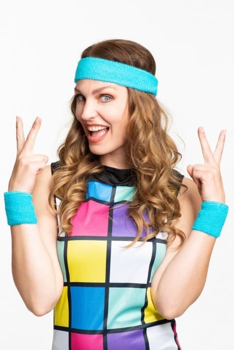 Zawartość: Zestaw opaska na głowę/nadgarstek turkusowy