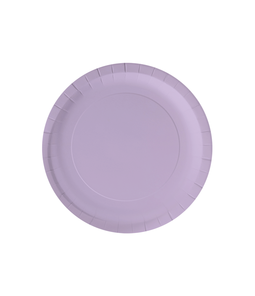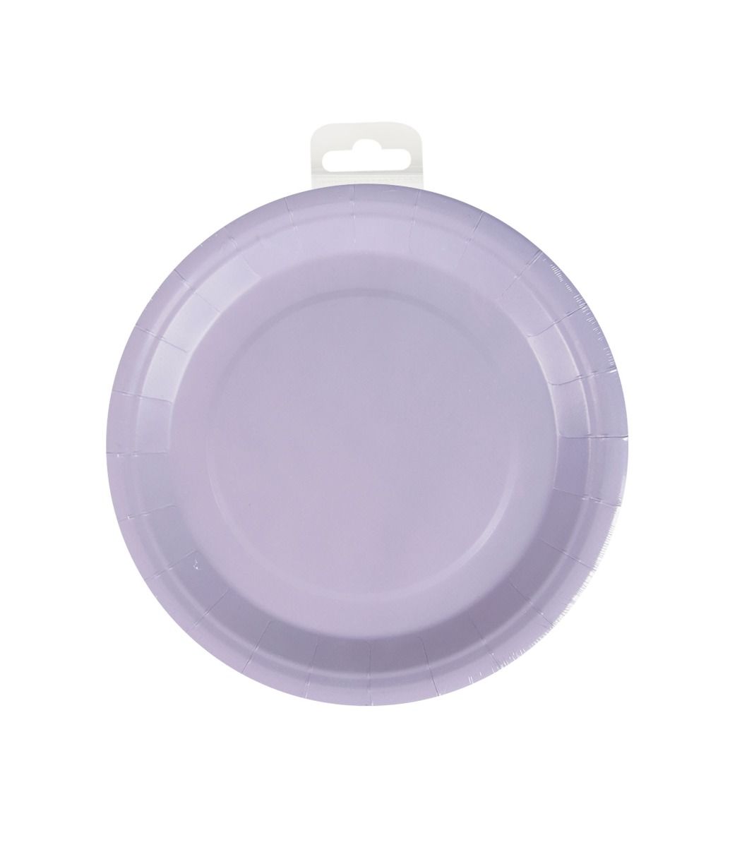 Talerzyki - Pastelowy fiolet to idealne elementy dekoracyjne na przyjęcie, którego motywem przewodnim jest kolor pastelowy. Talerzyki mają wymiary 23 x 23 cm, są pakowane po 8 sztuk i idealnie pasują do innych pastelowo-fioletowych elementów, takich jak konfetti, serwetki, kubki, obrusy, pudełka na przekąski i flagi. Zaprezentuj te elementy razem, aby klient od razu wiedział, z czego składa się ta kolekcja. Te talerze są wykonane z papieru, dzięki czemu są przyjazne dla środowiska