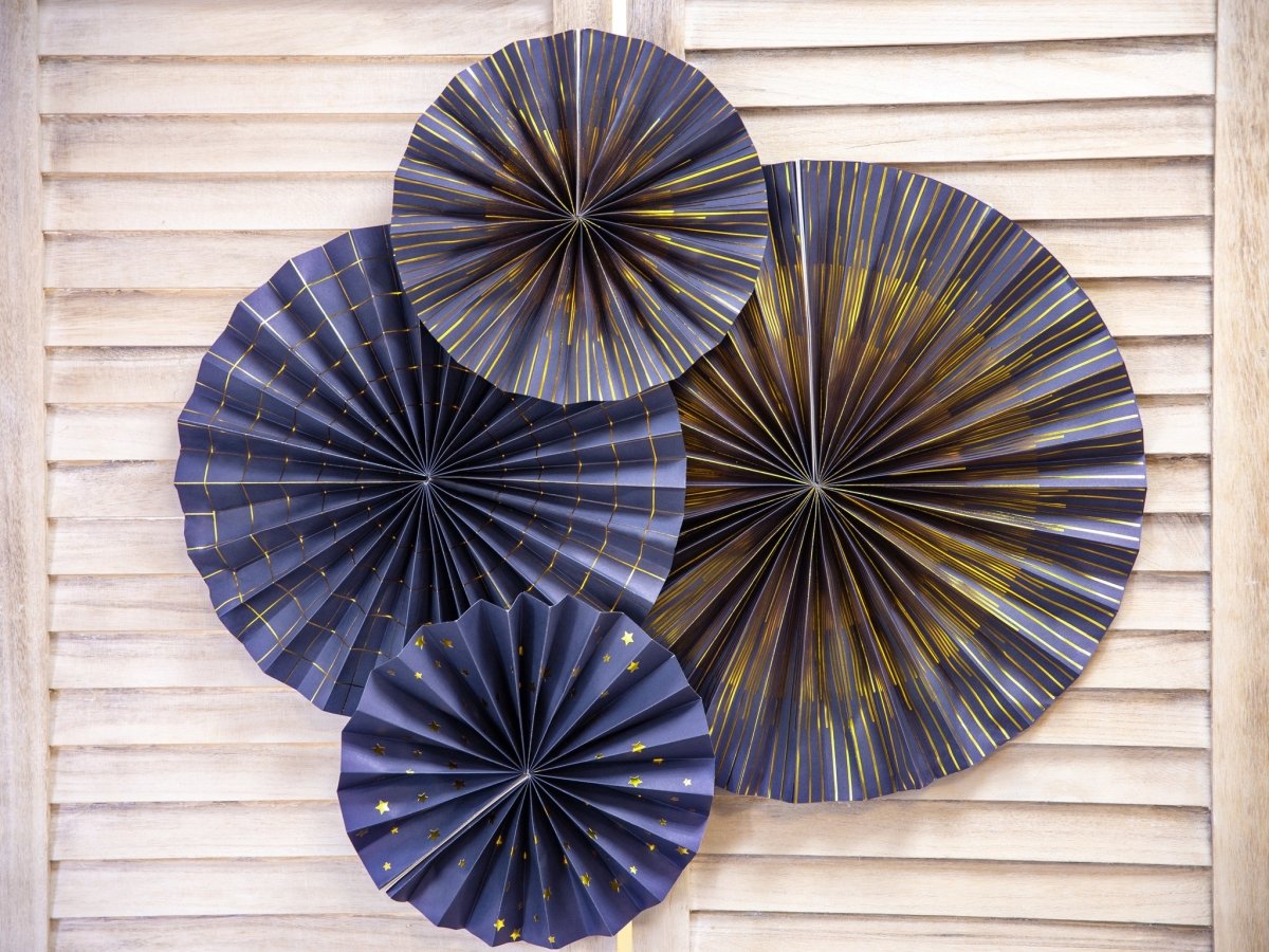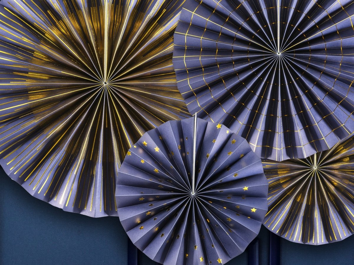 Wachlarze papierowe niebieskie Zestaw 23-40 cm 4 szt