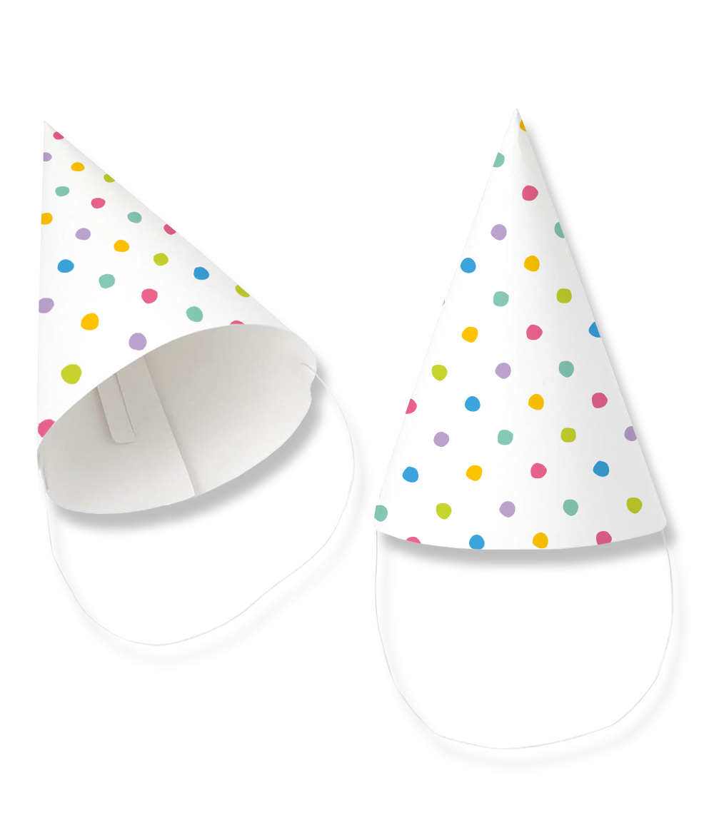 Czapeczki imprezowe są lekkie, wygodne , a dzięki poręcznej gumce odpowiednie dla imprezowiczów w każdym wieku. Połącz je bez wysiłku z talerzykami, kubkami, serwetkami, balonami i konfetti Party Dots, aby uzyskać jeden stylowy i spójny motyw imprezowy.