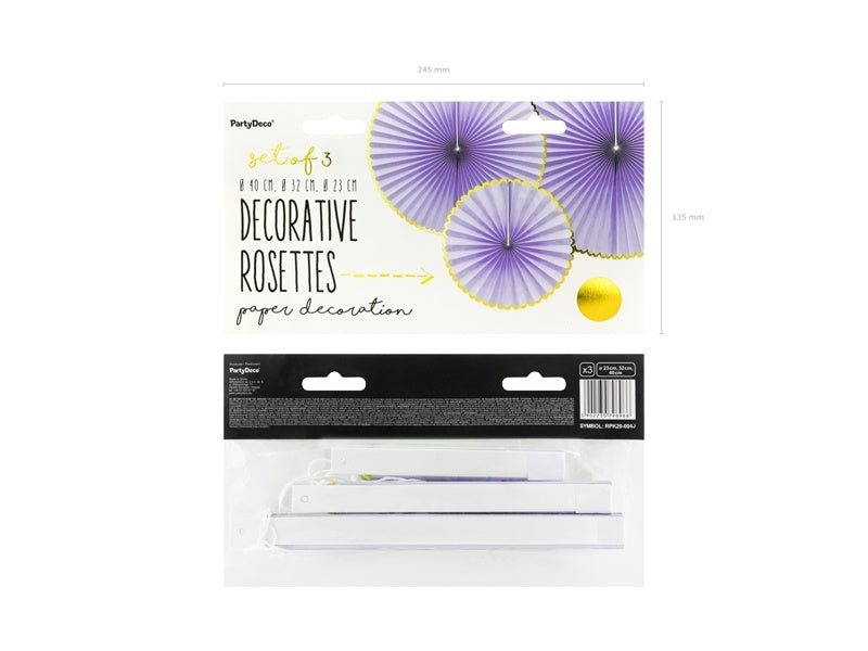 Wachlarze papierowe Lilac Gold Set 23-40cm 3 szt