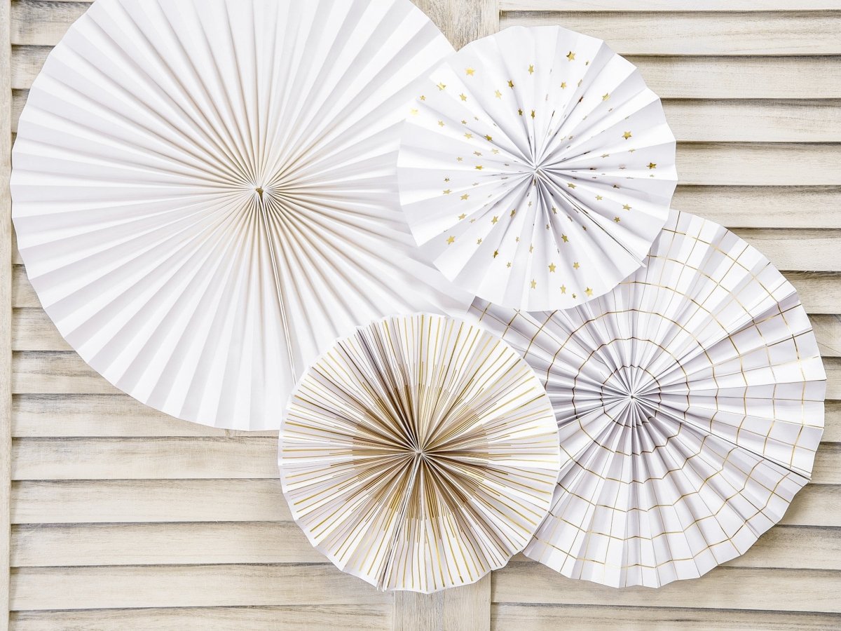 Wachlarze papierowe złoto-białe zestaw 23-40 cm 4 szt