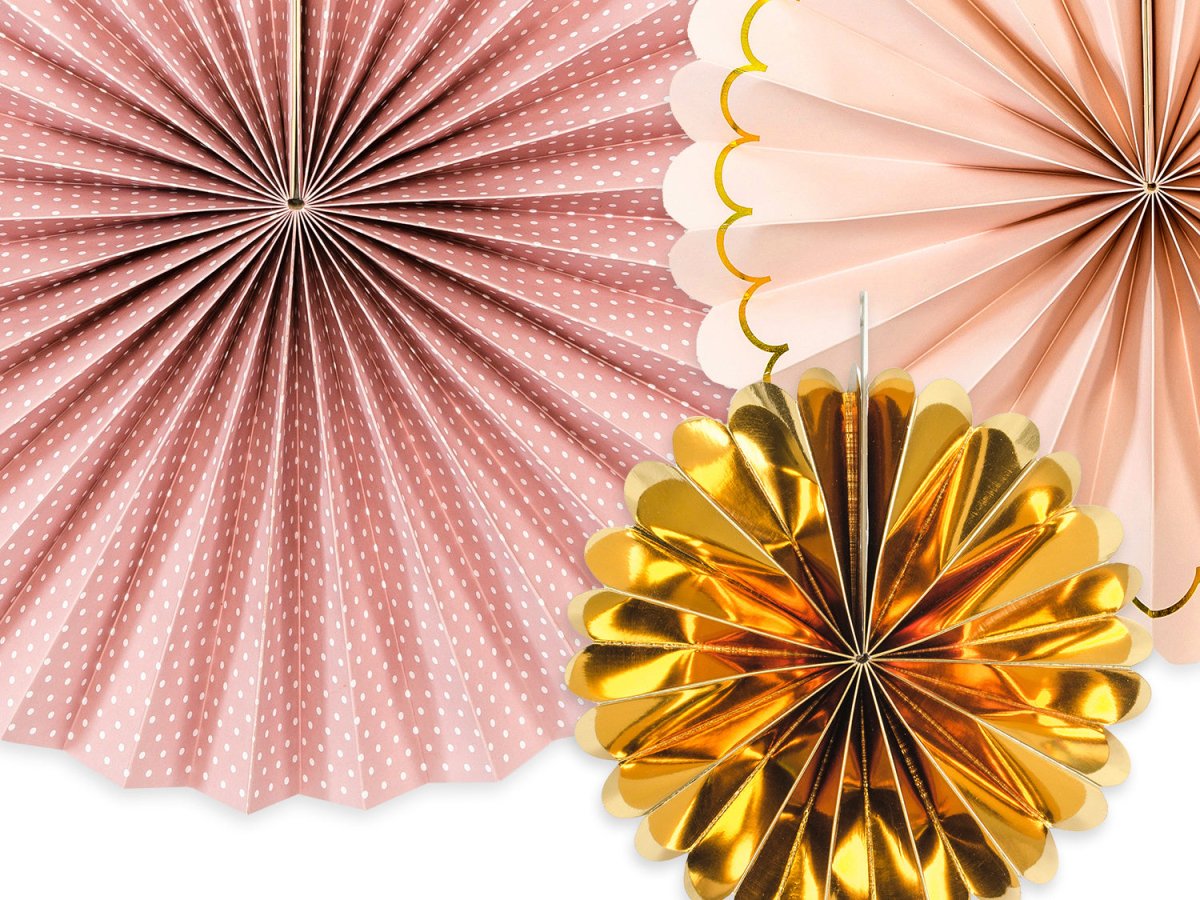 Wachlarze papierowe różowe Zestaw 13-32 cm 3 szt