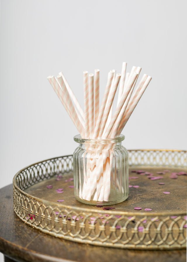 Słomki papierowe Baby Pink Striped 19.7cm 20szt