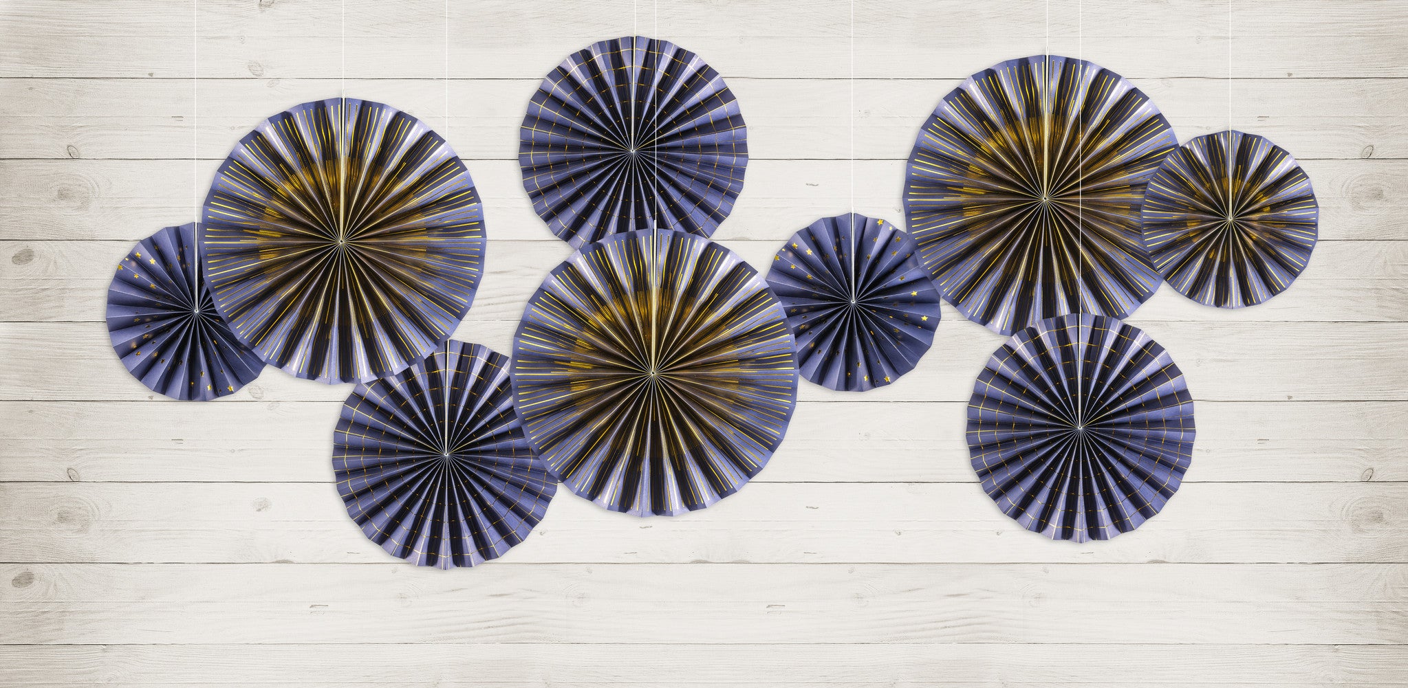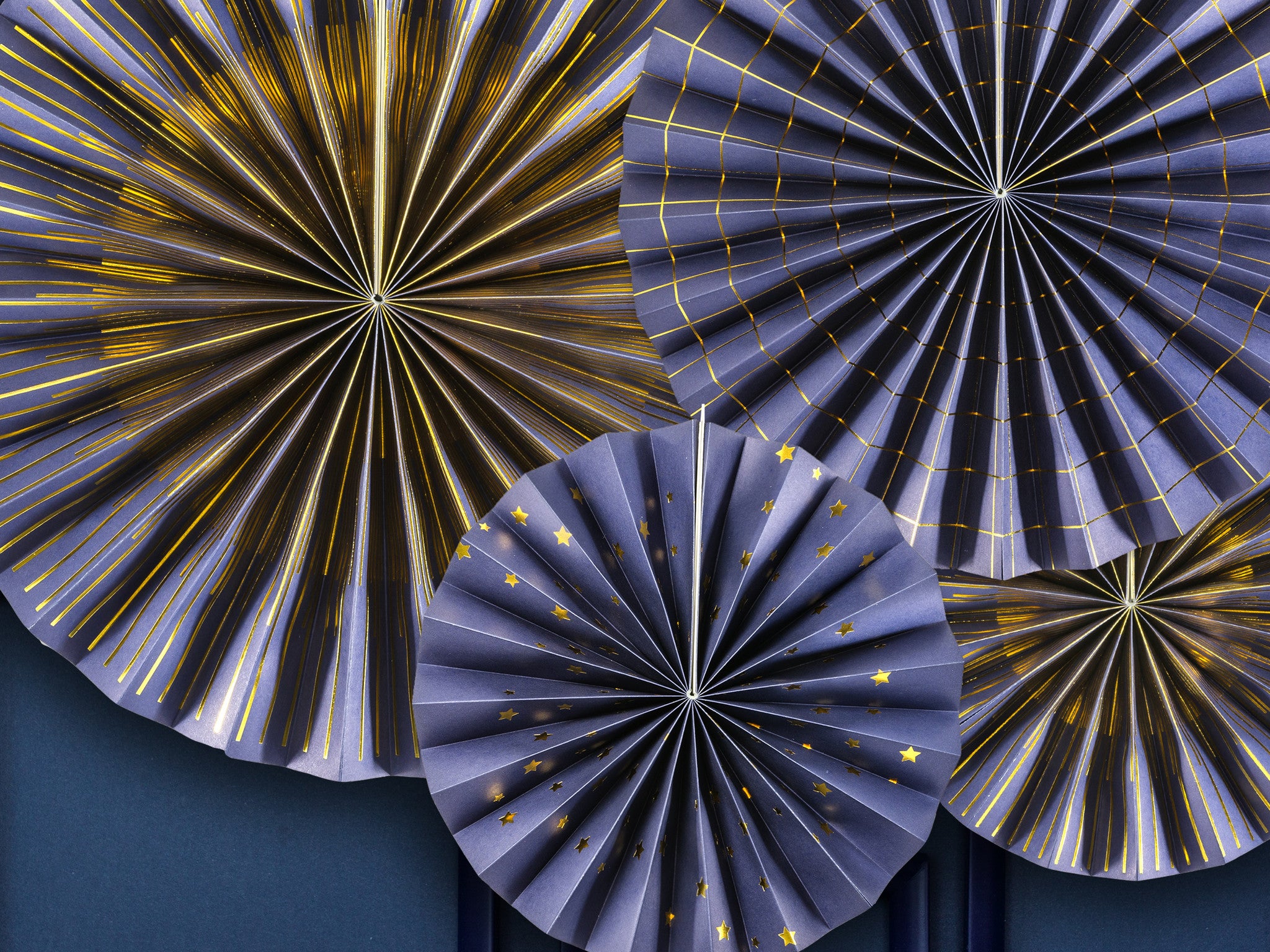 Zawartość opakowania:Wachlarze papierowe niebieskie zestaw 23-40cm 4 sztuki