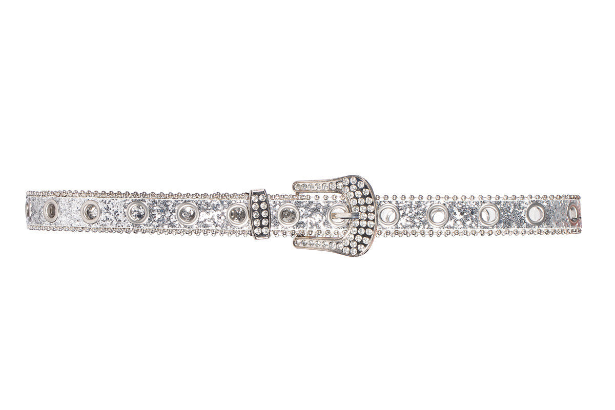 Pasek błyszczący z klamrą z dżetów Srebrny