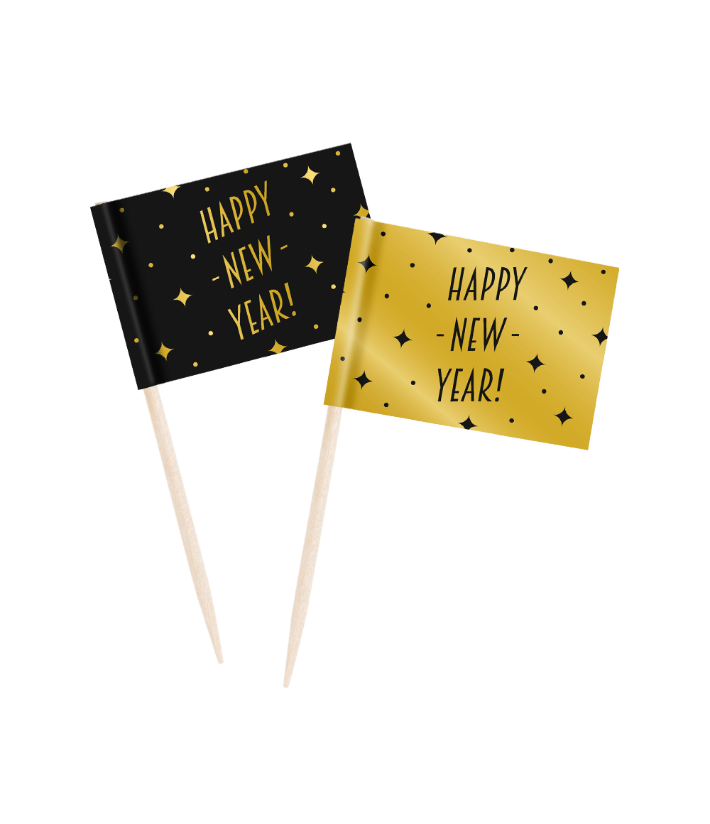 Patyczki koktajlowe Szczęśliwego Nowego Roku 6,5cm 50szt