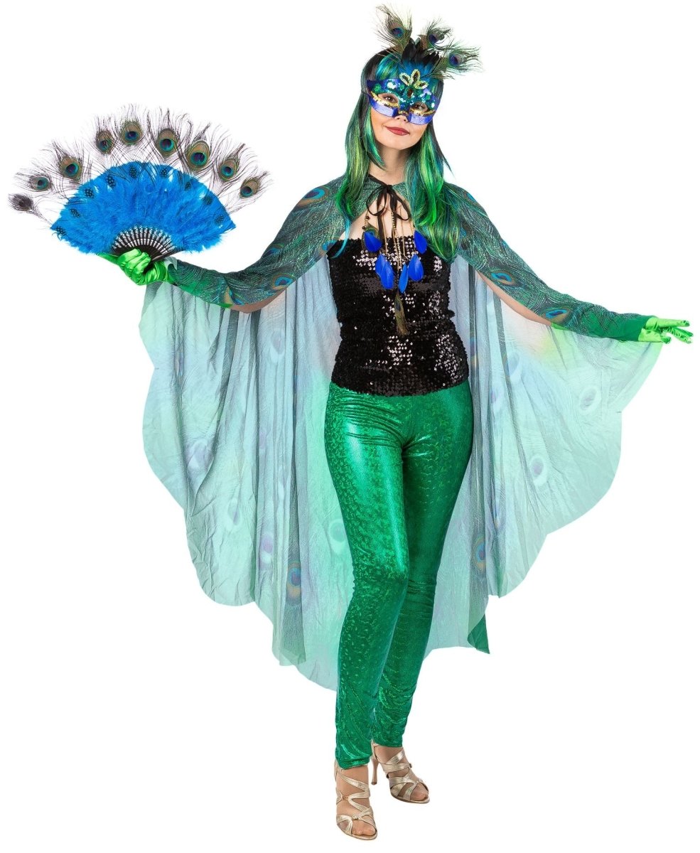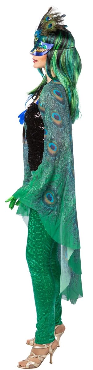 Spraw, aby Twój strój był spektakularny dzięki tej kolorowej pelerynie w pawie. Idealna na imprezy tematyczne, karnawałowe, kostiumowe lub kostiumy fantasy.