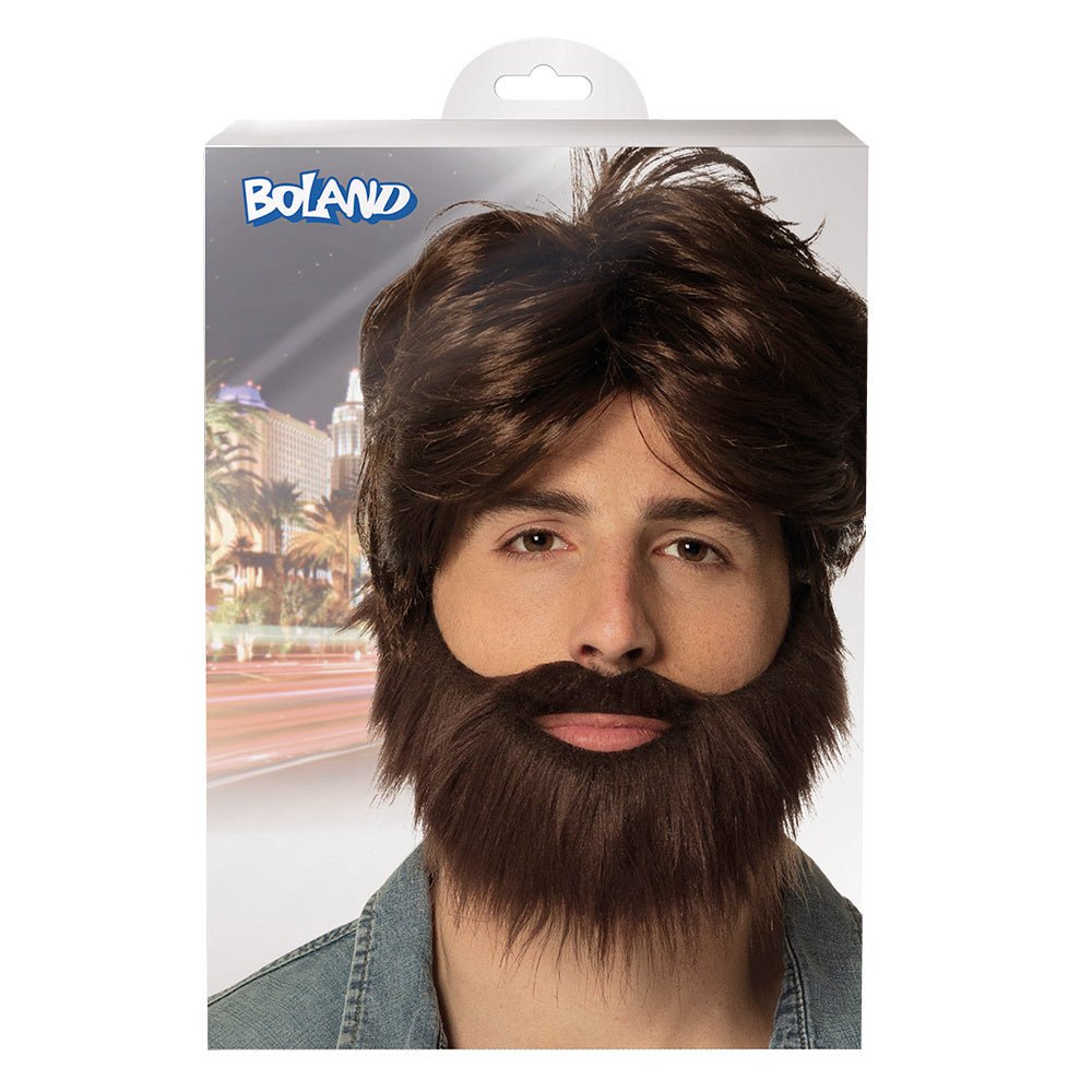 Zawartość opakowania: Peruka krótkie włosy i broda brązowa
