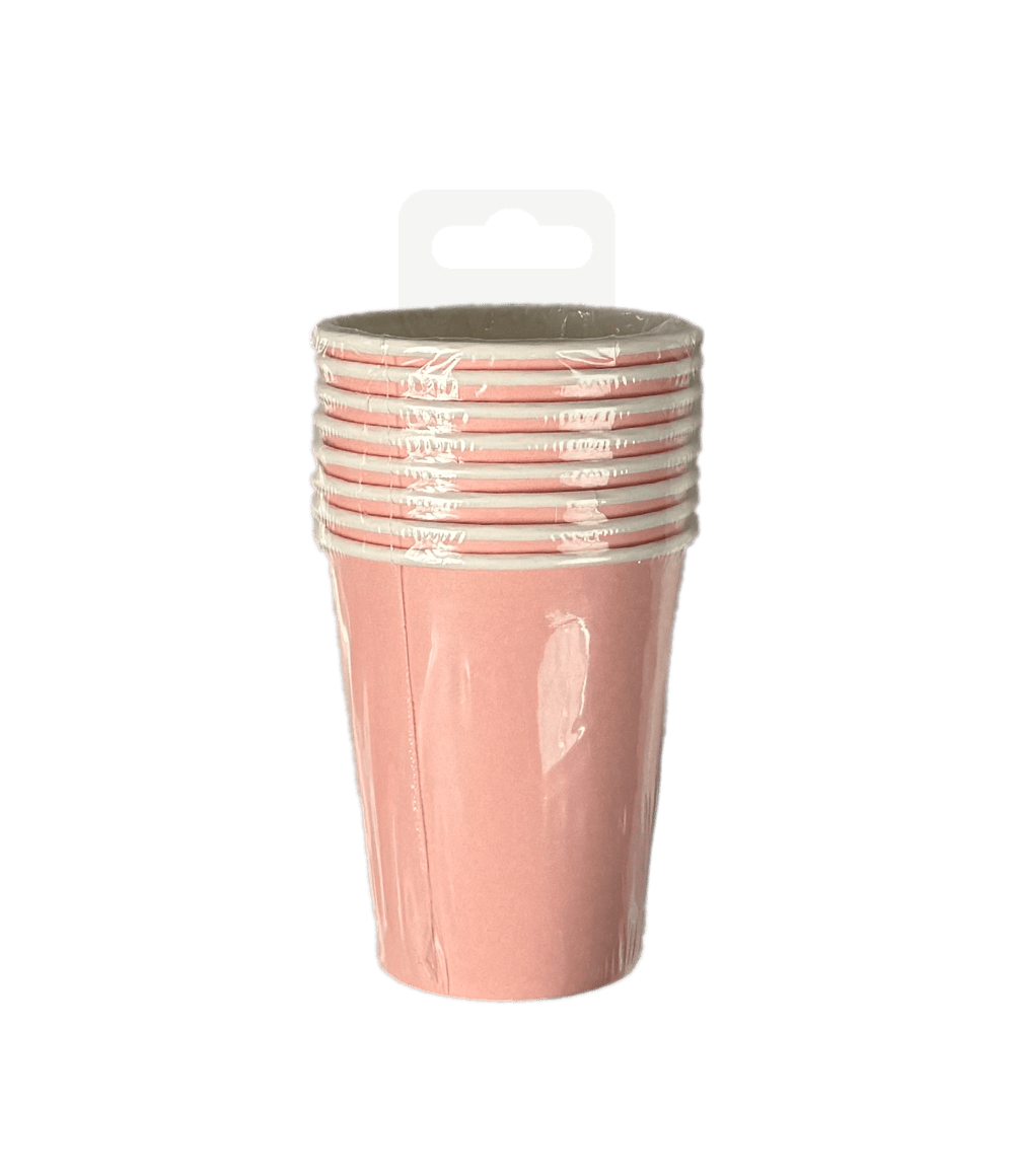 Kubeczki w kolorze pastelowego różu to idealne elementy dekoracyjne na przyjęcie, którego motywem przewodnim jest kolor pastelowego różu. Kubki mają wymiary 8,5 x 7 cm, są pakowane po 8 sztuk i doskonale pasują do innych elementów w kolorze pastelowego różu, takich jak konfetti, serwetki, talerzyki, obrusy, pudełka na przekąski i flagi. Zaprezentuj te elementy razem, aby klient od razu wiedział, z czego składa się ta kolekcja. Kubki są wykonane z papieru, dzięki czemu są przyjazne dla środowiska!