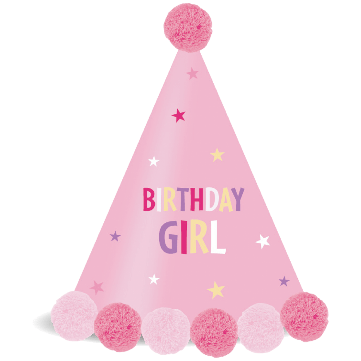 Te świąteczne czapeczki urodzinowe Birthday Girl natychmiast stworzą radosną atmosferę na każdym przyjęciu urodzinowym. Wykonane z wytrzymałego kartonu i łatwe w noszeniu