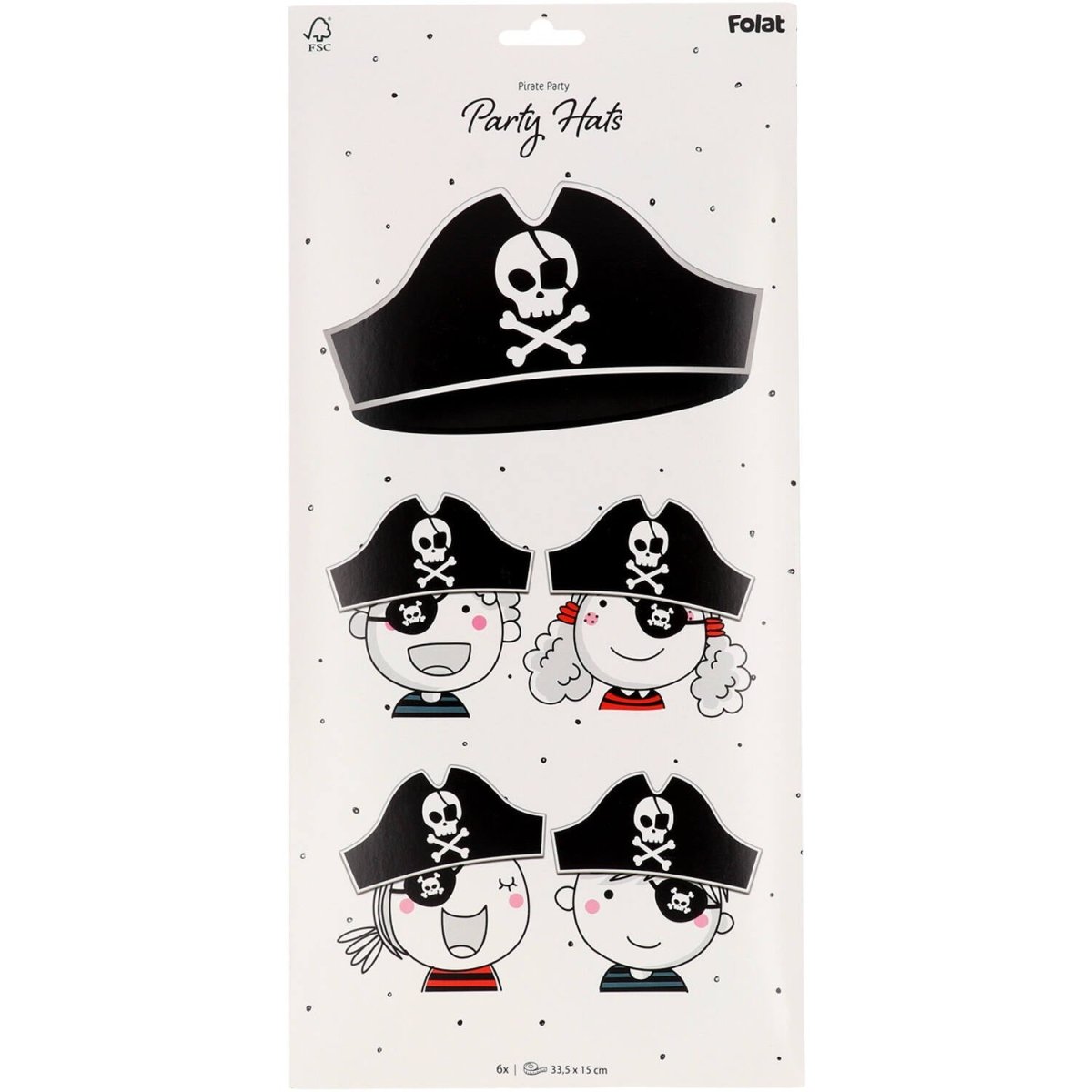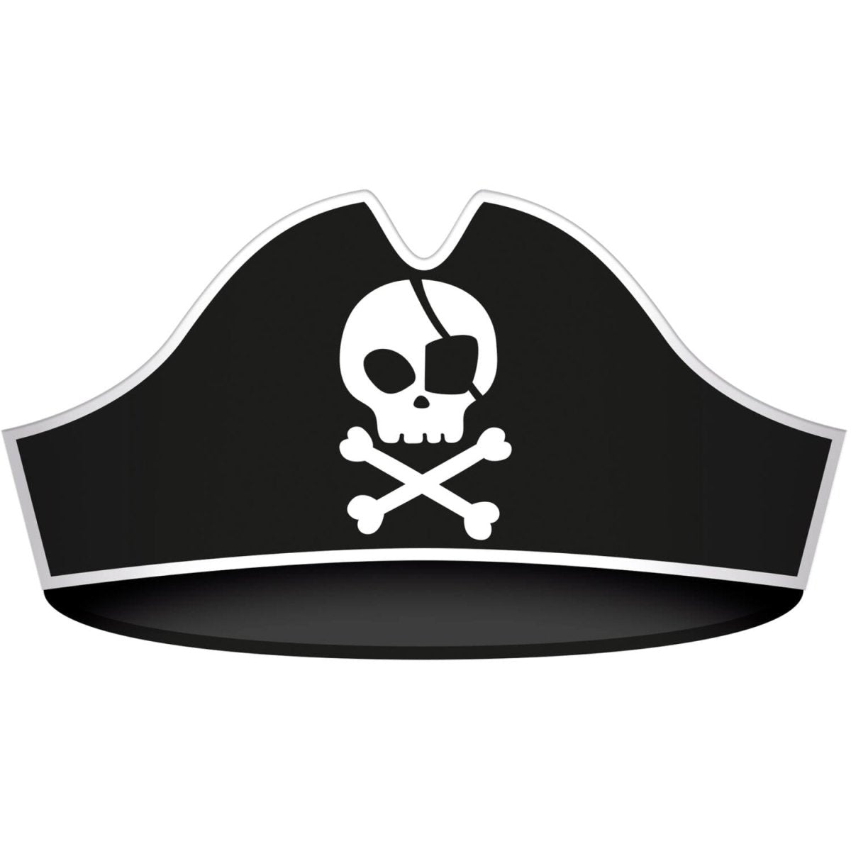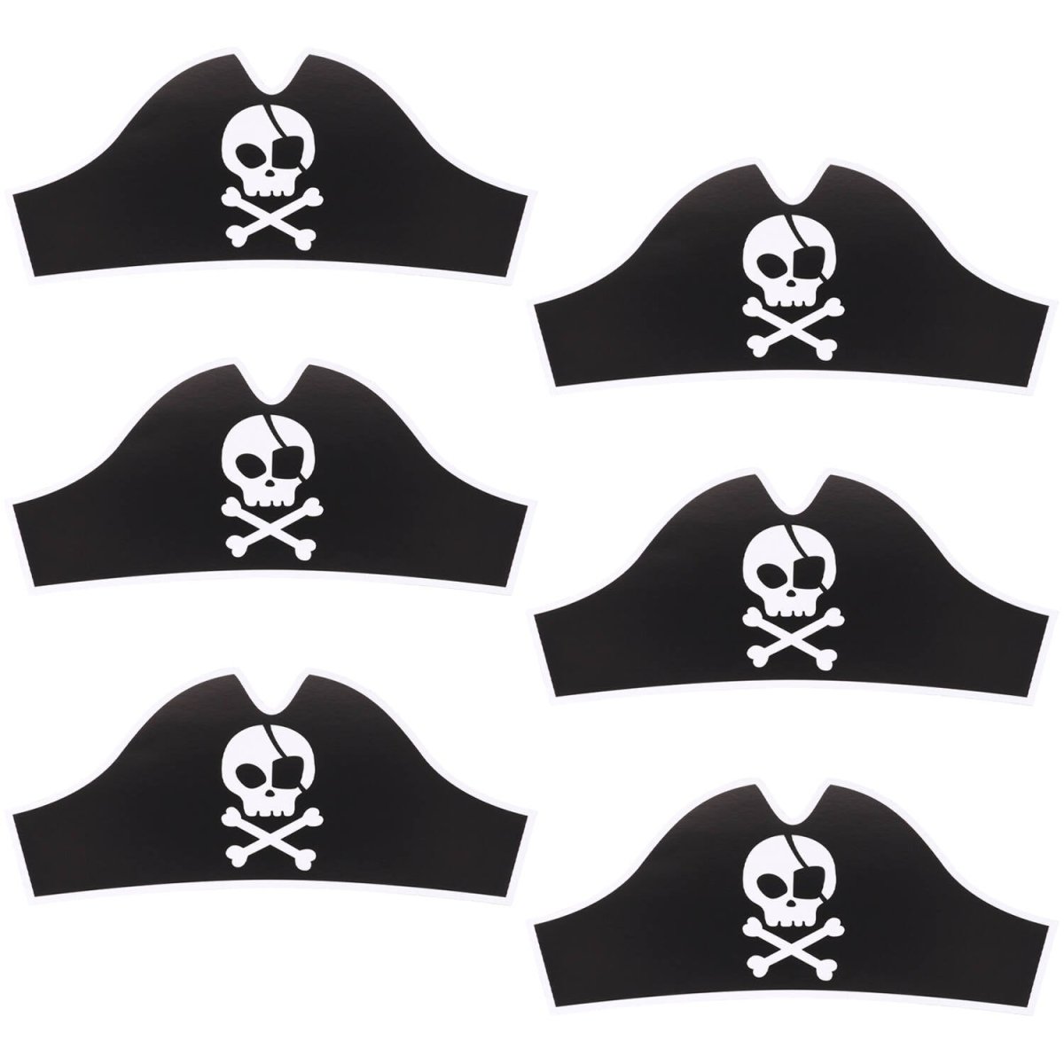 Zmień się w prawdziwego pirata. Pirackie kapelusze - Pirate Party - 33,5 x 15 cm - 6 szt. Zawartość: 6 imprezowych kapeluszy. Do wykorzystania na przykład podczas następujących przyjęć/imprez okolicznościowych: Impreza dla dzieci, Urodziny, Impreza tematyczna. Te czapki z czaszką mają 15 cm wysokości. W opakowaniu znajduje się jeden rodzaj: czarny z białym rondem i piracką czaszką. Czapki są pakowane na płasko i można je łatwo złożyć w kapelusz. Dzięki gumkom o długości 33,5 cm kapelusze pewnie trzymają się na głowie. Ten zestaw dekoracji należy do naszej kolekcji Pirate Party. Ten przedmiot jest wykonany z papieru.