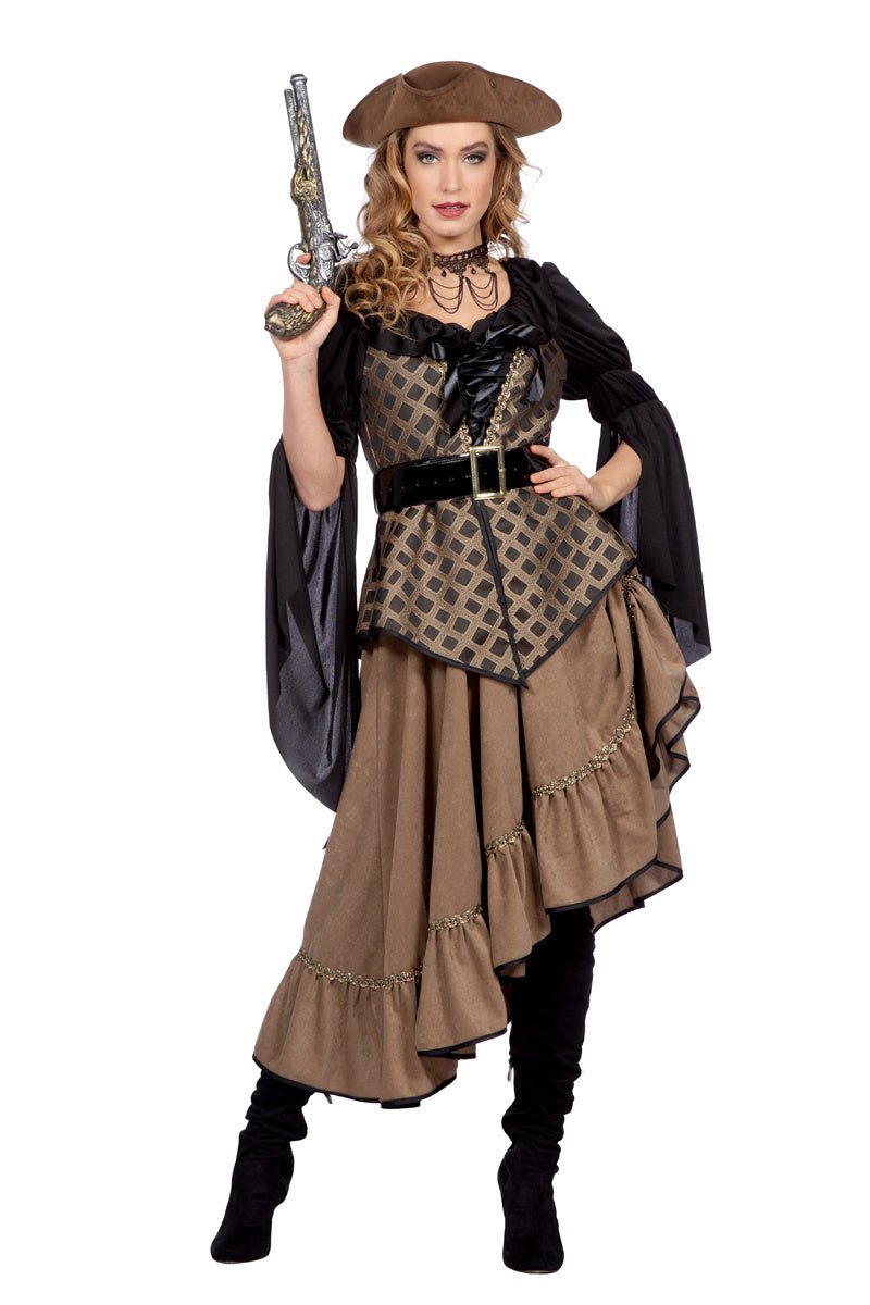 Piracka sukienka damska brązowa