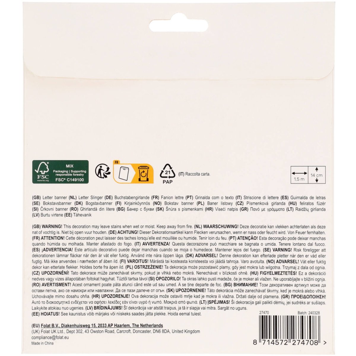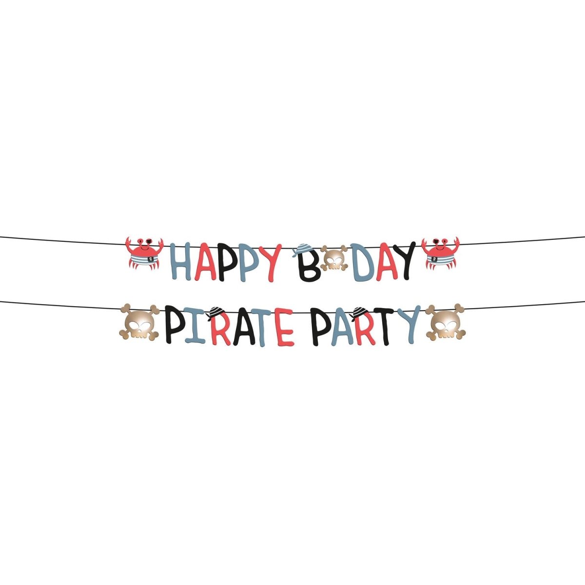 Pokaż, kto jest prawdziwym piratem! Zestaw girland literowych - Pirackie Party - 1,5 metra. Zawartość: 1 girlanda literowa w 2 częściach. Do wykorzystania na przykład podczas następujących przyjęć/imprez: Przyjęcie dla dzieci, Urodziny. Girlanda składa się z dwóch części: girlandy z napisem "HAPPY BDAY" (ok. 14 cm wysokości) z 2 krabami i czaszką po obu stronach oraz girlandy z napisem "PIRATE PARTY" (ok. 14 cm wysokości) z 2 czaszkami po obu stronach. Obie girlandy mają 1 metr długości. Kraby, czaszki i litery można przesuwać w tę i z powrotem po czarnej wstążce. Ten zestaw girlandy z literami należy do kolekcji Pirate Party autorstwa Folat. Ten przedmiot jest wykonany z papieru.