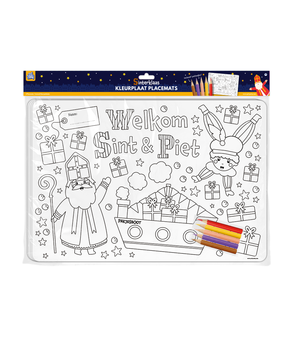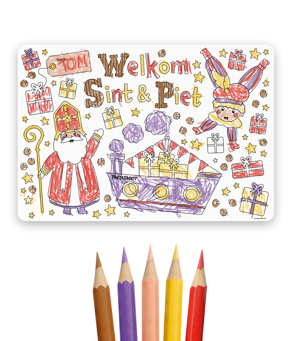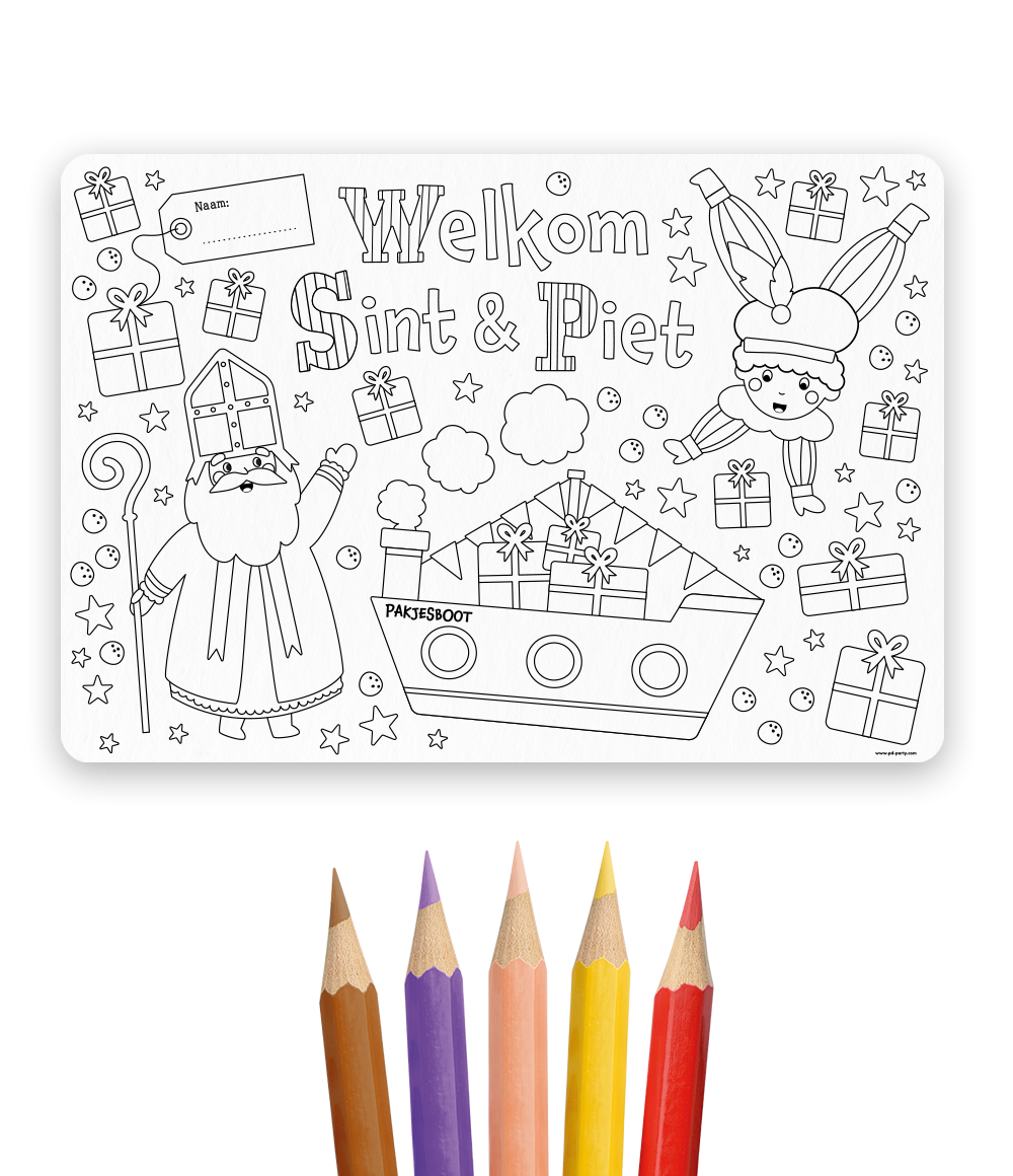 Dodaj koloru i przytulności przyjęciu Sinterklaas dzięki tym kolorowym podkładkom. Podkładki są zadrukowane wesołymi ilustracjami Sinterklaasa, które dzieci (i dorośli!) mogą samodzielnie pokolorować. Tak więc stół będzie nie tylko świątecznie nakryty, ale także kreatywną przestrzenią do zabawy.