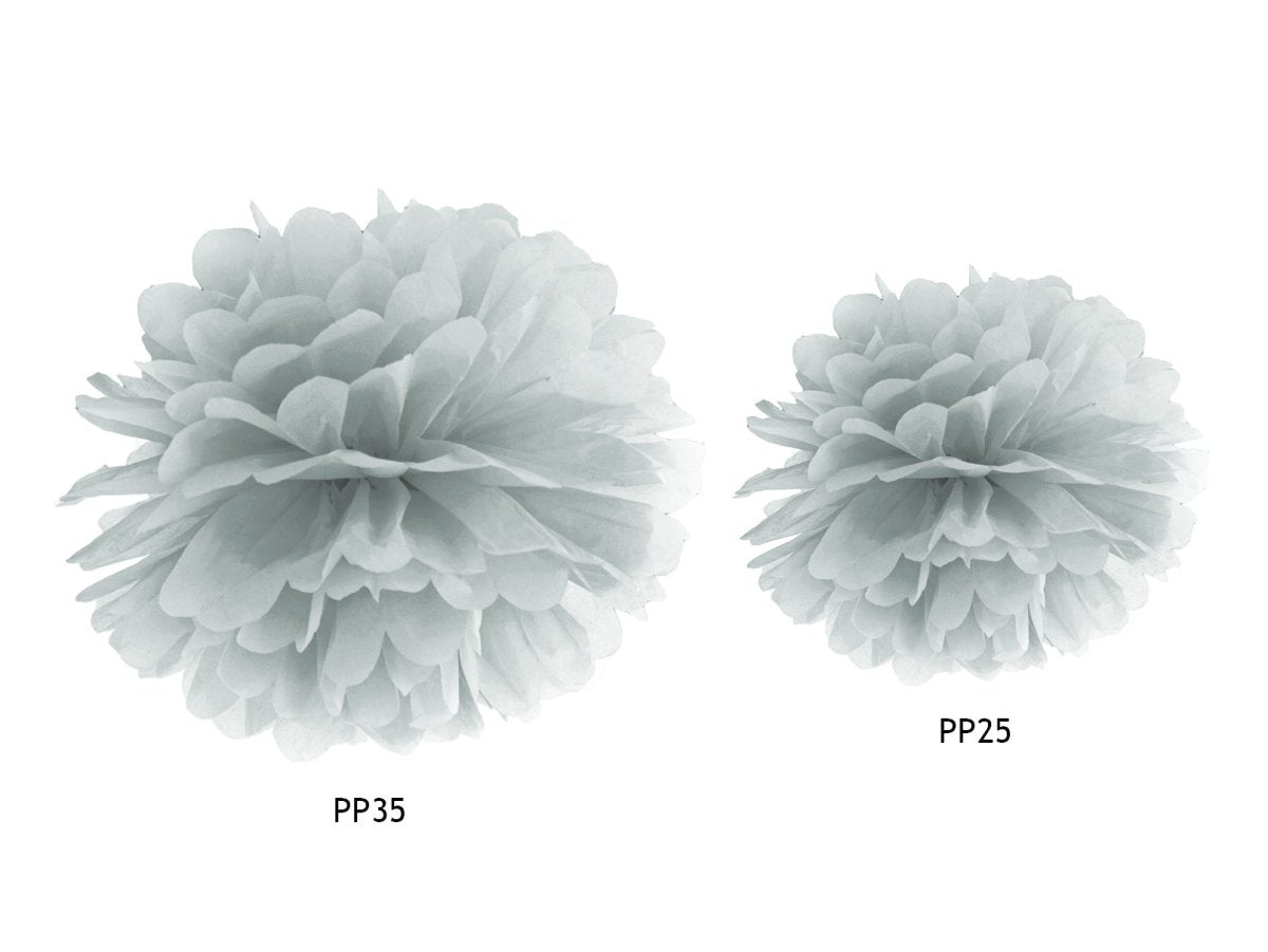 Zawartość: Pompon bibułowy, srebrny, rozmiar 25 centymetrów