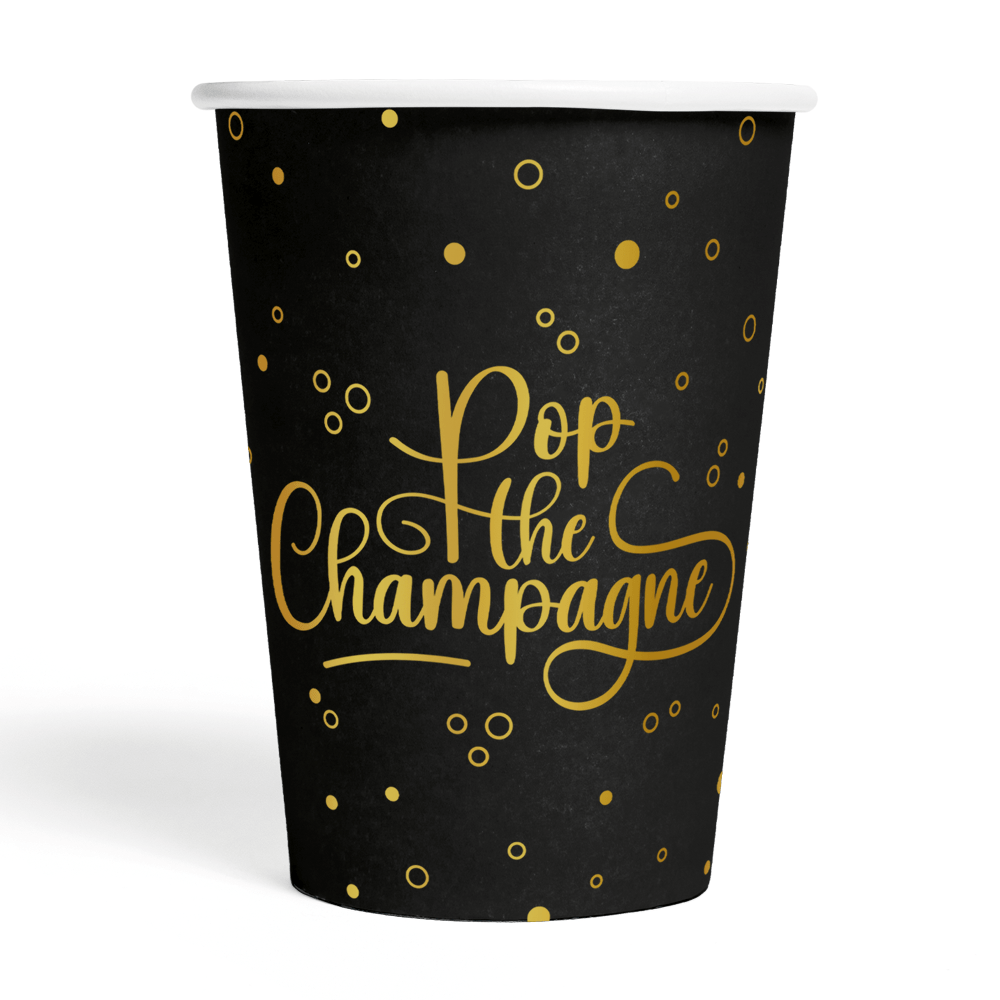 Pop The Champagne Cups Black Gold 210ml 8szt