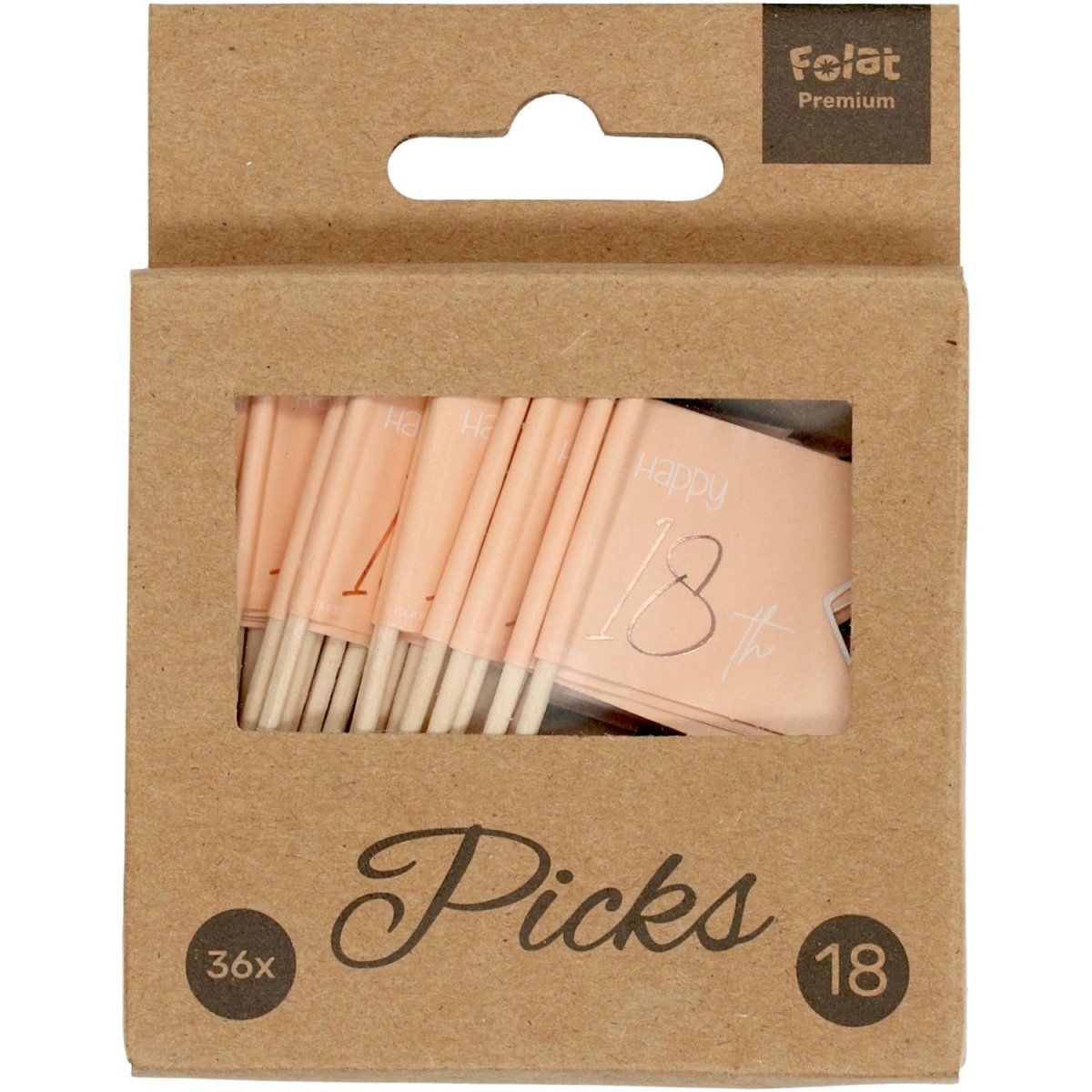 Nakłuwacze Elegant Lush Blush 18 Years - 36 szt. Zawartość: 36 nakłuwaczy. Kolor: różowy. Do wykorzystania na przykład podczas następujących przyjęć/imprez okolicznościowych: Urodziny, Rocznica. Wymiary: 6,5 cm wysokości. Artykuł jest wykonany z bambusa.