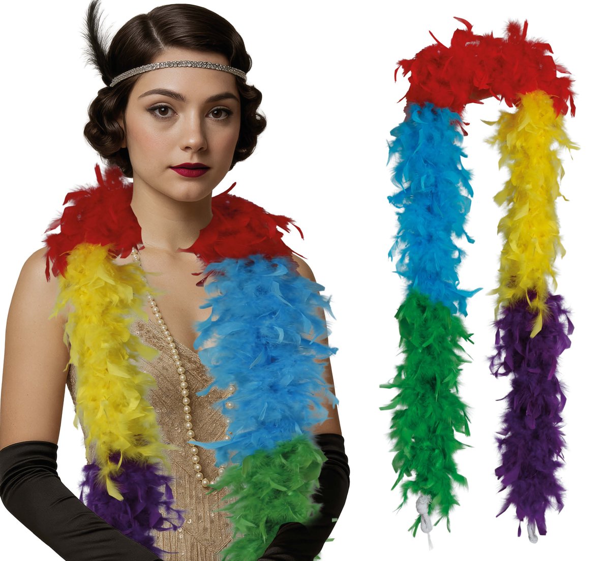 Zwróć na siebie uwagę dzięki temu błyszczącemu boa z tęczowych piór. Jasne, radosne kolory sprawiają, że idealnie nadaje się na karnawał, imprezy z dumą, imprezy tematyczne lub występy sceniczne. Boa jest lekkie, miękkie i nadaje każdemu strojowi żywiołowy i świąteczny wygląd.