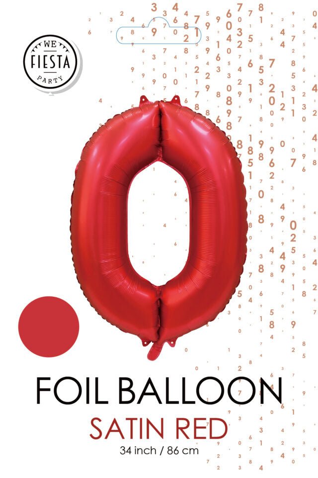 Czerwony balon z numerem 0 Rok Połysk 86 cm
