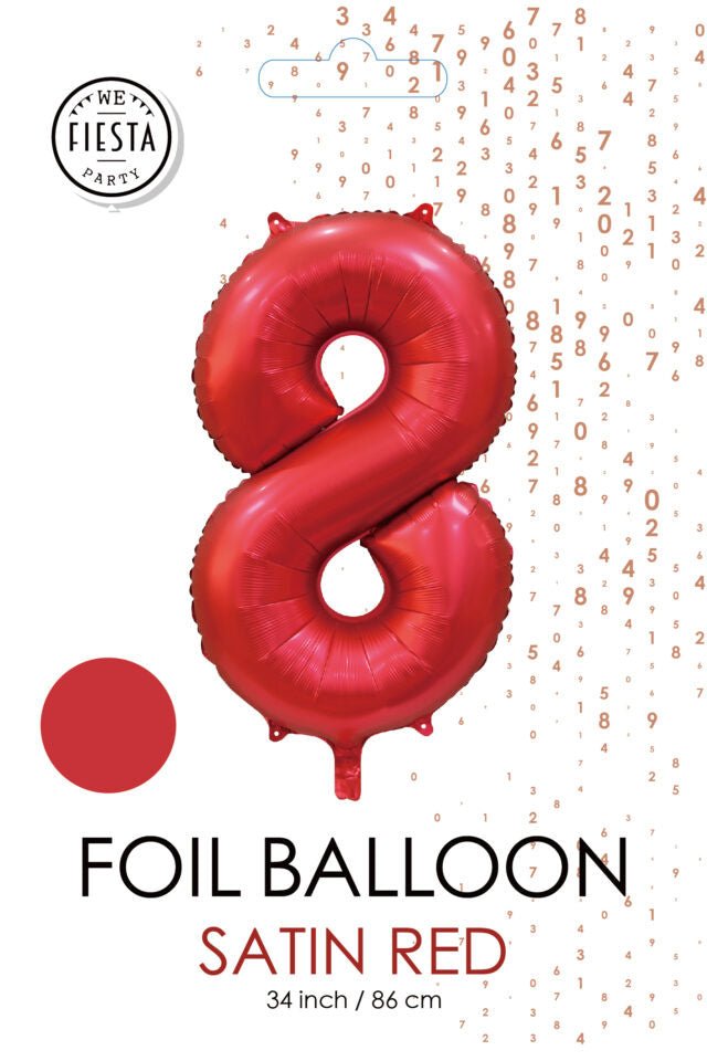 Balon z czerwoną figurką 8 lat, połysk 86 cm