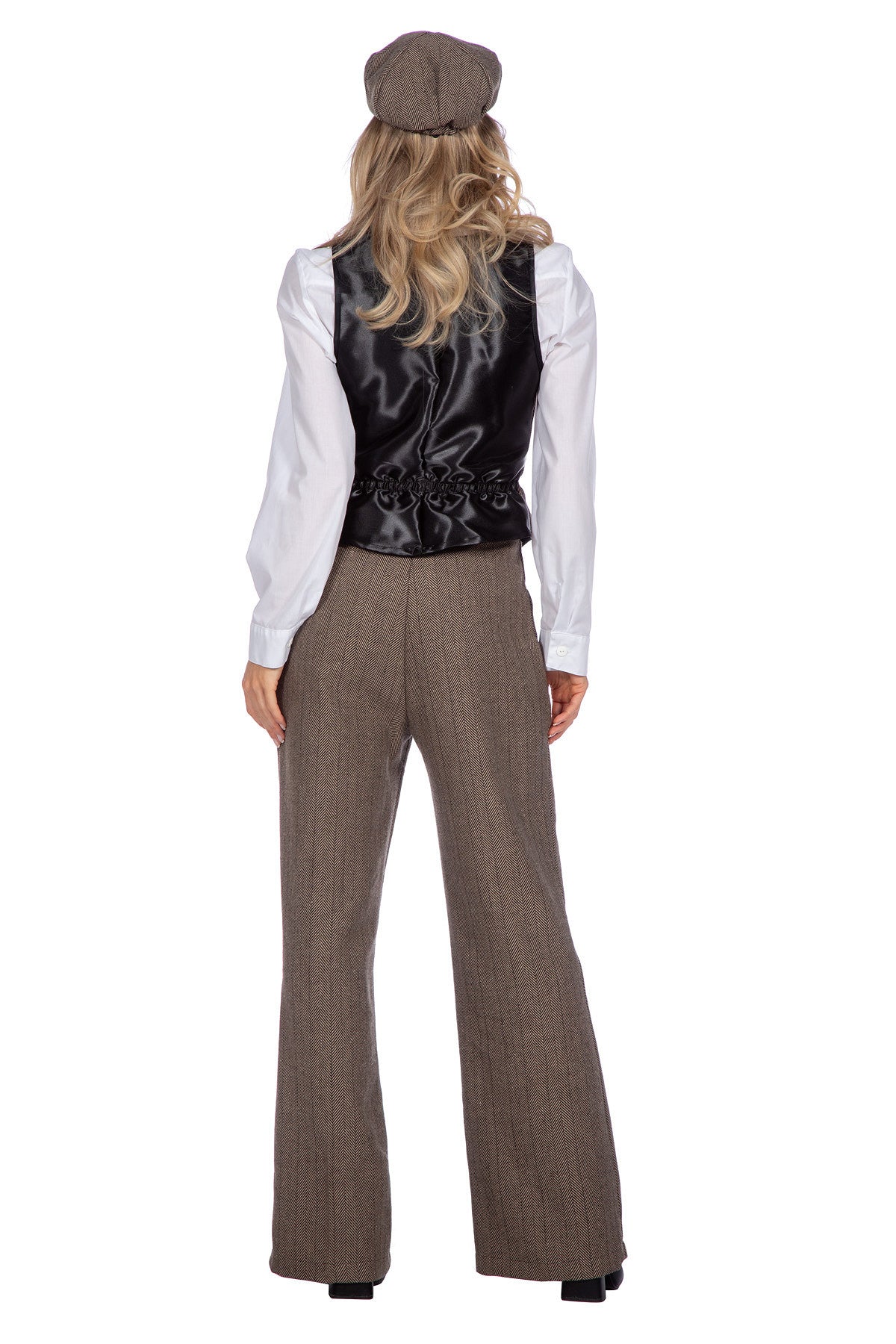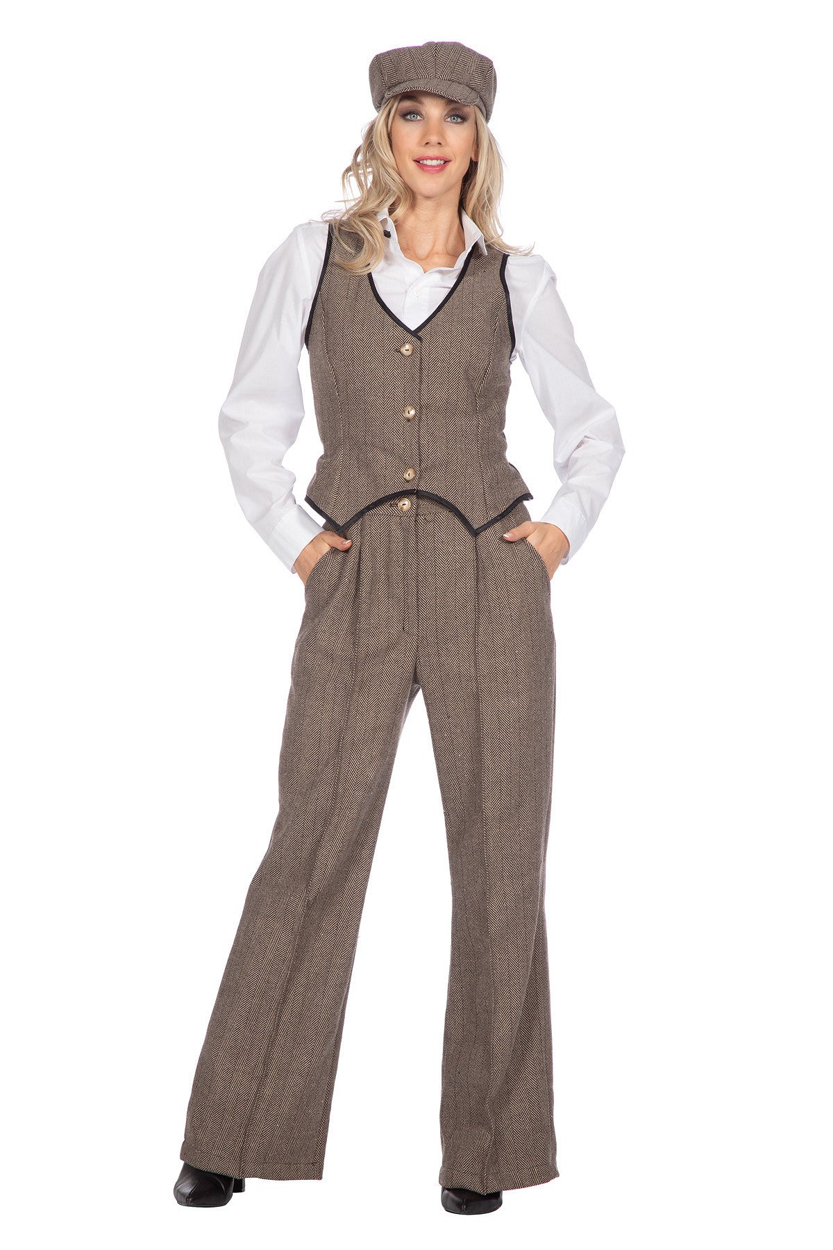 Stylowy strój z lat 20. zawierający spodnie, kamizelkę i kapelusz. Idealny na imprezy tematyczne, przebierane przyjęcia lub imprezy w stylu Gatsby.