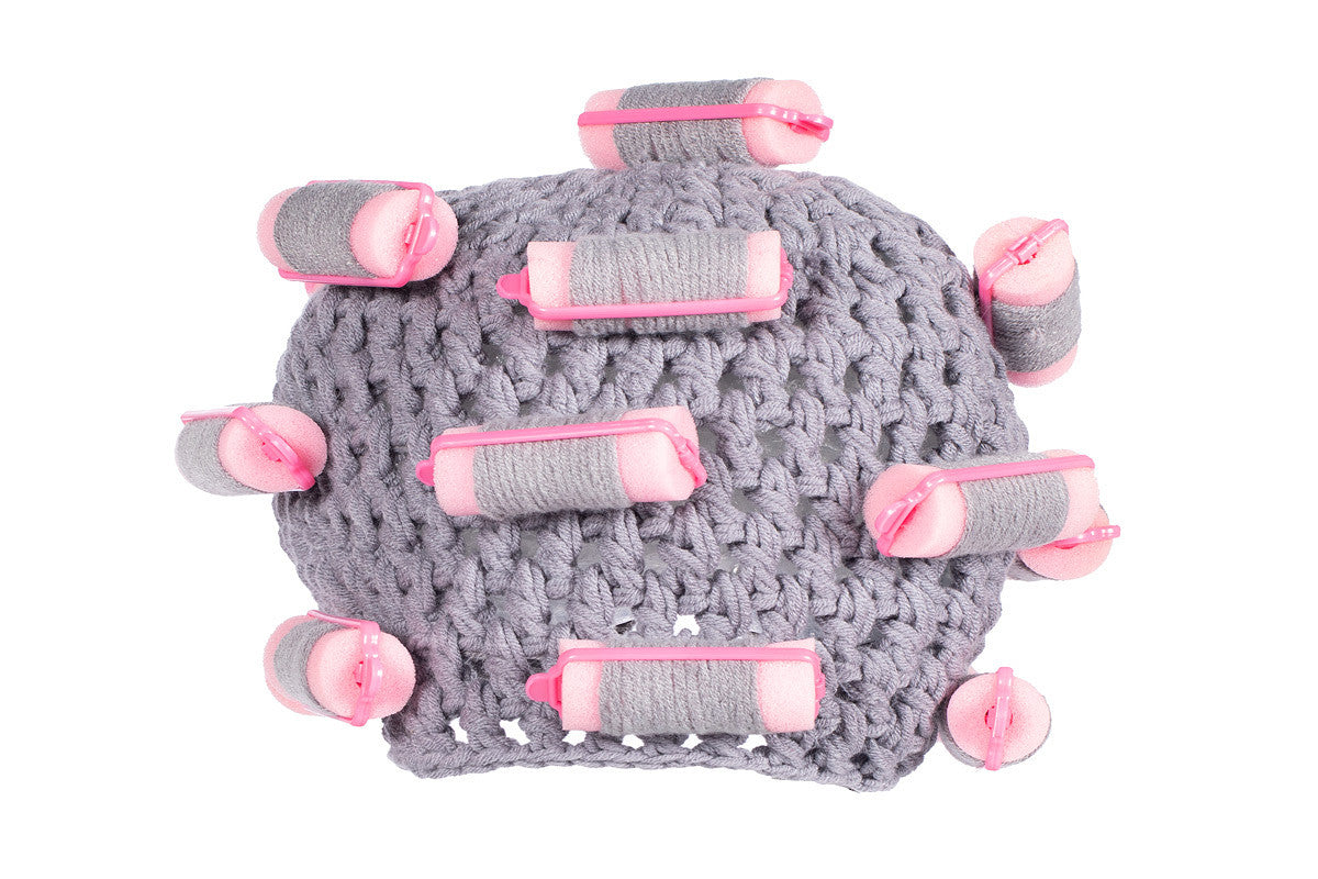 Urocza czapka z lokami w kolorze szarym i różowym. Idealna jako dodatek na imprezy tematyczne, przebierane lub do zimowych strojów.