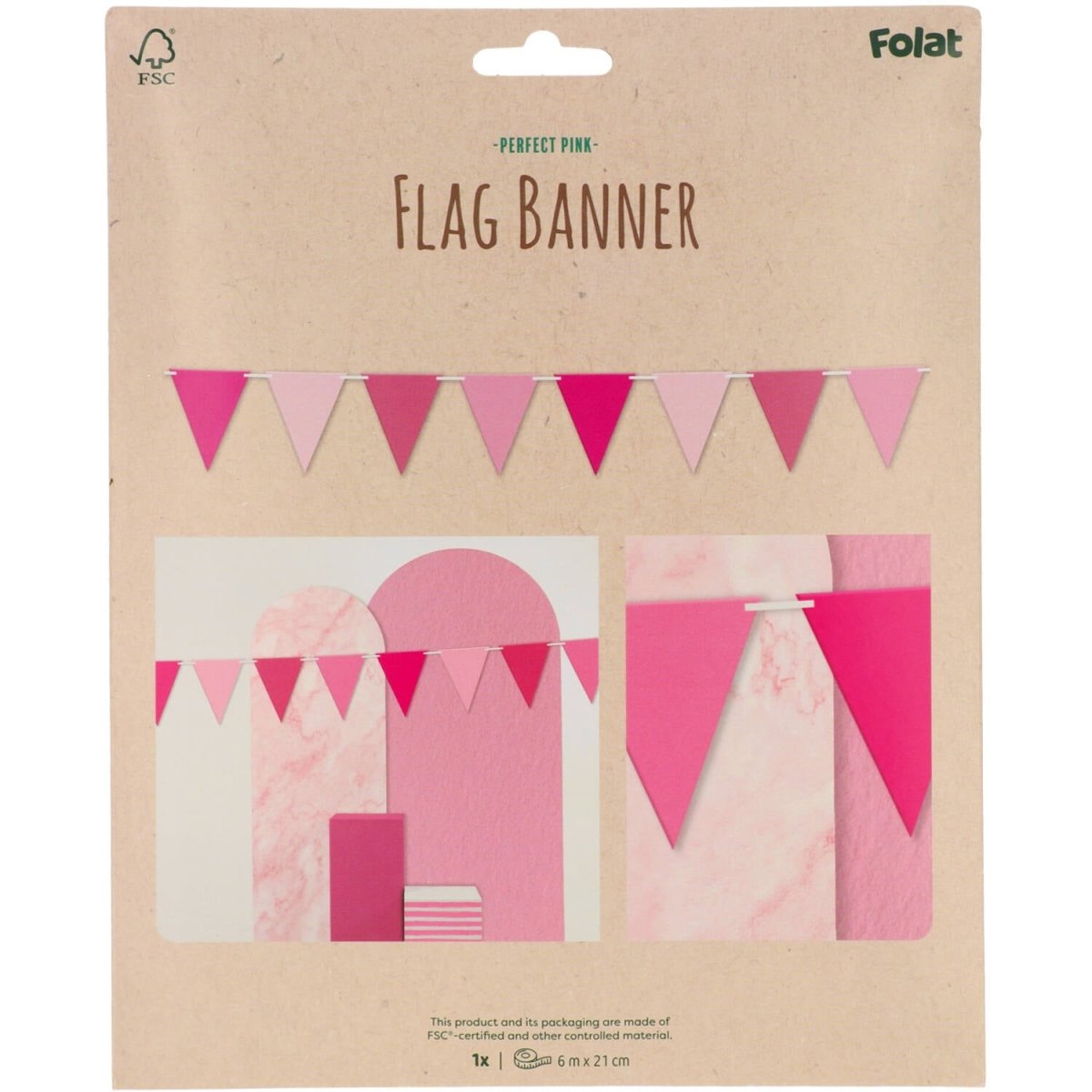 Piękny róż jest również świąteczny! Flagline - Perfect Pink - 6 metrów. Zawartość: 1 linia flag. Na przykład do wykorzystania podczas następujących przyjęć/imprez okolicznościowych: Urodziny, Impreza tematyczna, Narodziny dziewczynki. Linia flag z ładnymi różowymi flagami w czterech różnych odcieniach różu. Na jednej linii znajduje się 16 flag. Flagi mają wymiary 17 x 21 cm. Linka wykonana jest z białej taśmy poliestrowej. Flagi mogą być indywidualnie nasuwane na wstążkę. Ten przedmiot jest wykonany z papieru FSC.