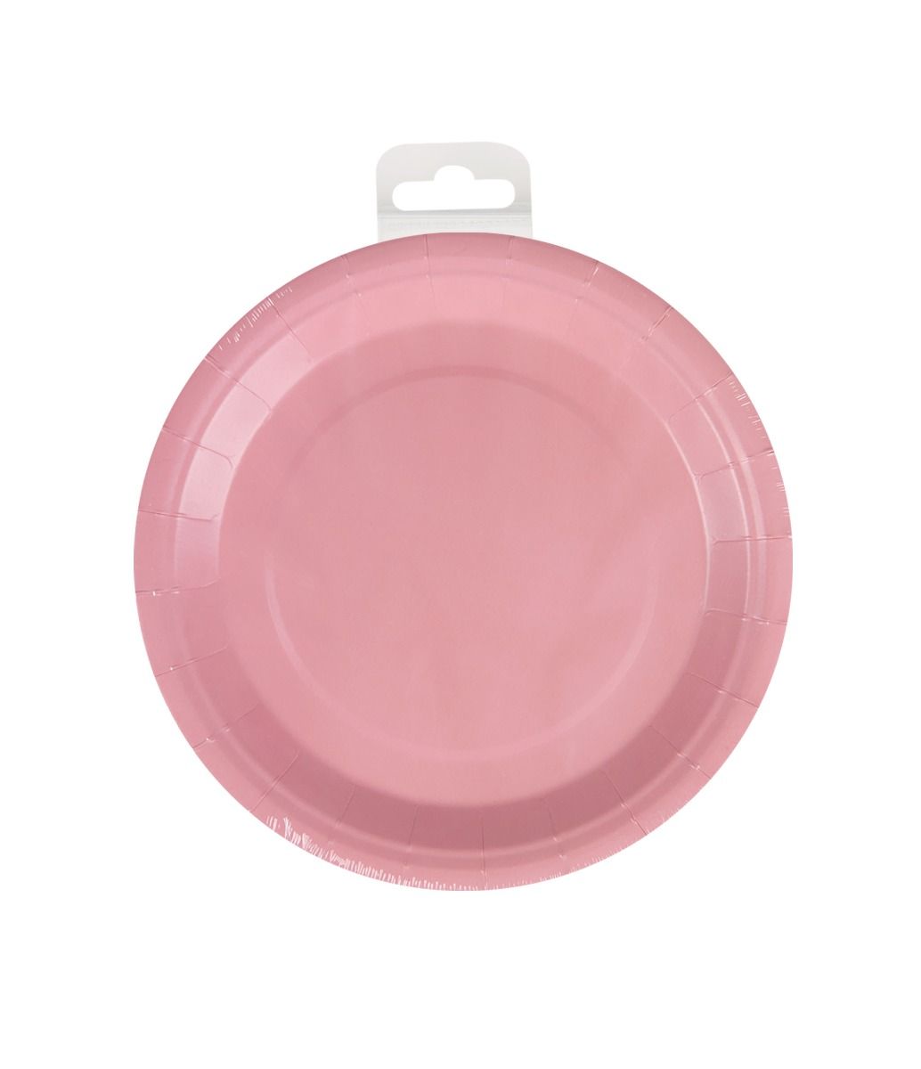 Talerzyki w kolorze pastelowego różu to idealne elementy dekoracyjne na przyjęcie, którego motywem przewodnim jest kolor pastelowego różu. Talerzyki mają wymiary 23 x 23 cm, są pakowane po 8 sztuk i idealnie pasują do innych elementów w kolorze pastelowego różu, takich jak konfetti, serwetki, kubki, obrusy, pudełka na przekąski i flagi. Zaprezentuj te elementy razem, aby klient od razu wiedział, z czego składa się ta kolekcja. Talerze są wykonane z papieru, dzięki czemu są przyjazne dla środowiska